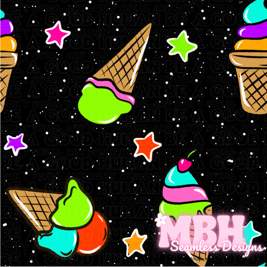 Neon Ice Cream Cones SAFE SWIM Seamless Pattern // PNG • MULTIPLE COLORWAYS