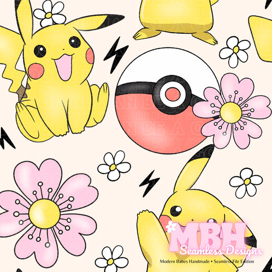LIMITED Pikachu Bolts Floral Seamless Pattern