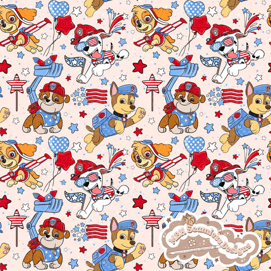 Patriotic Paw Patrol Seamless Pattern // PNG โขMULTIPLE COLORWAYS