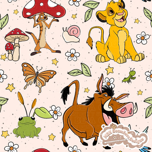Cottagecore Lion and Friends Seamless Pattern // PNG โขMULTIPLE COLORWAYS