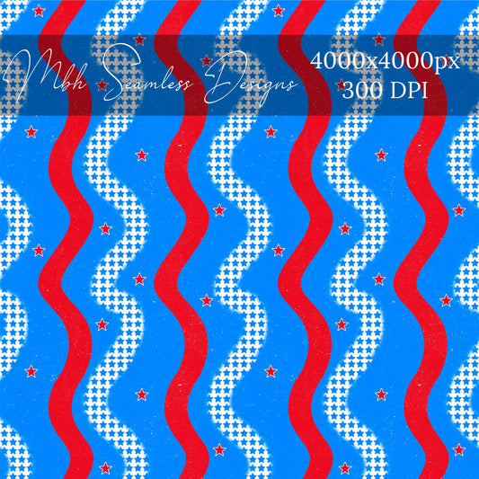Wavy Patriotic Starry Stripes Seamless Pattern