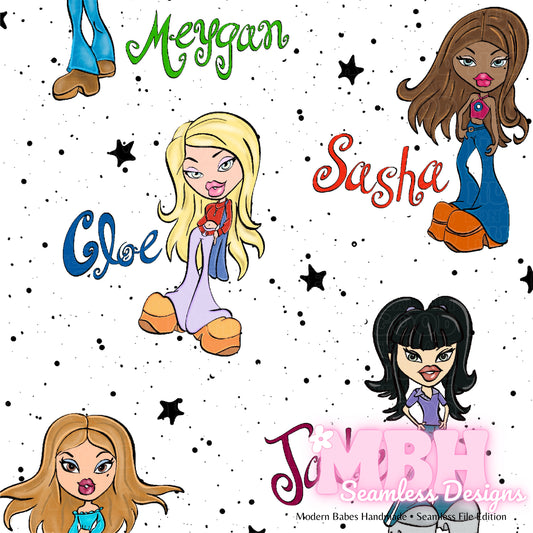 Brats Doll Names Seamless Pattern MULTIPLE COLORWAYSBratz