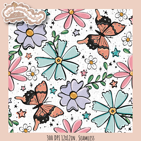 Spring Butterfly Floral Seamless Pattern MULTIPLE COLORWAYS