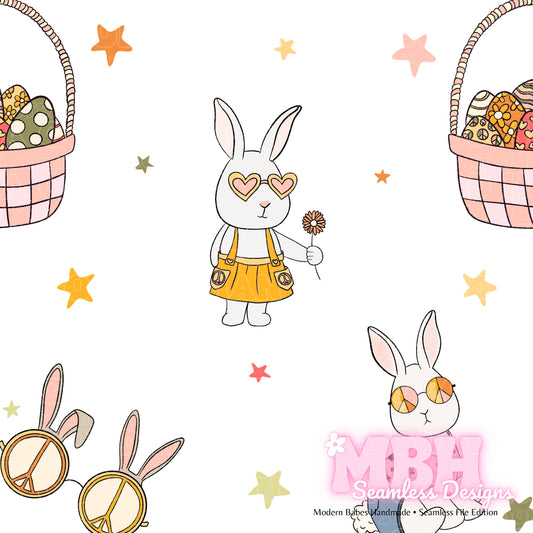 Hippie Bunnies Assorted Colorways Seamless Pattern