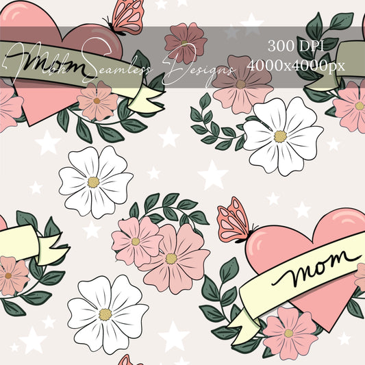 Floral Mom Tattoo Heart Seamless Pattern