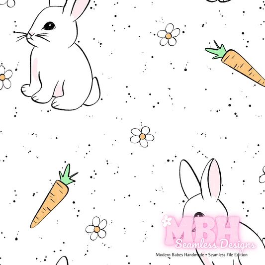 Cute Daisy Bunny Carrots SPEX Seamless Pattern Multiple Colorways