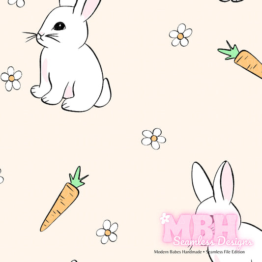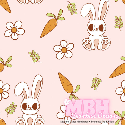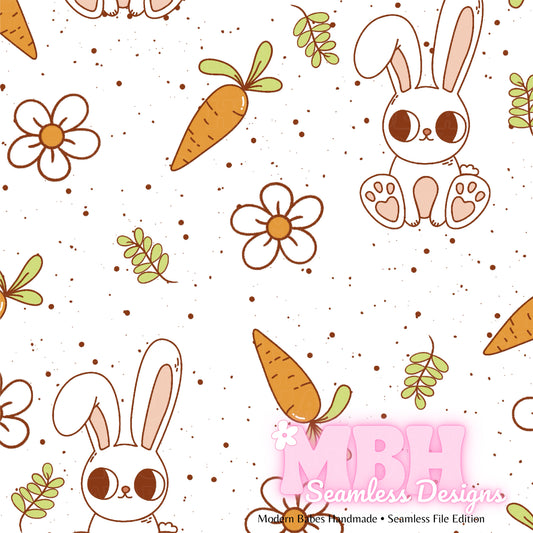 Cute Daisy Bunny Carrots Seamless Pattern Multiple Colorways