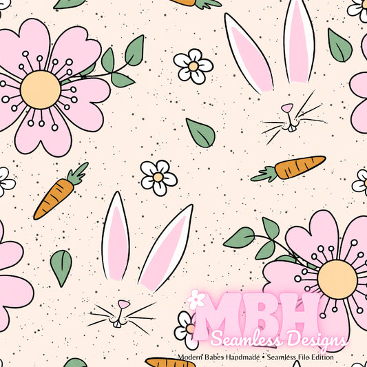 Bunny Face Floral Seamless Pattern Multiple Colorways