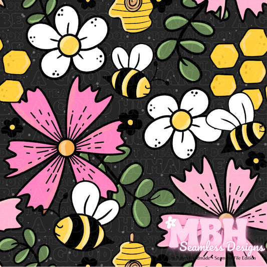 Pink Floral Bees MULTIPLE COLORWAYS Seamless Pattern