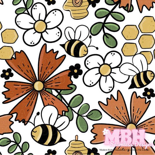 Floral Bees MULTIPLE COLORWAYS Seamless Pattern
