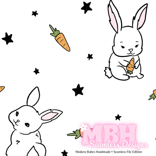 Starry Cute Bunny Carrots Seamless Pattern Multiple Colorways