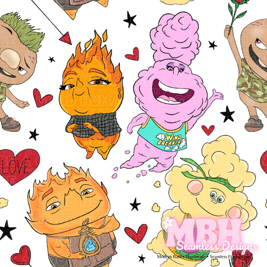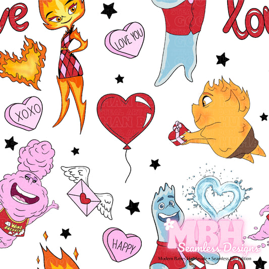 Elemental Friends Valentine Assorted Colorways Seamless Pattern