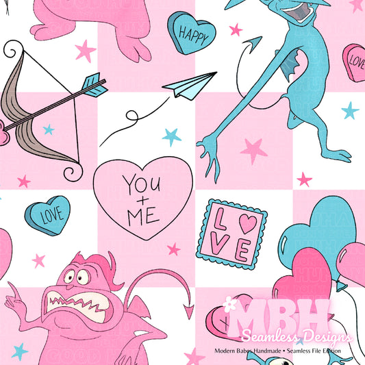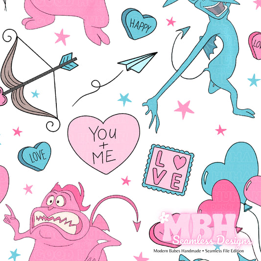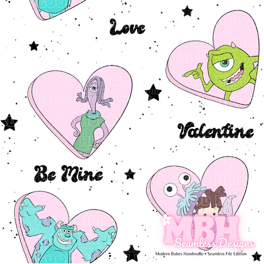 Monsters Inc. Valentine Hearts Seamless Pattern
