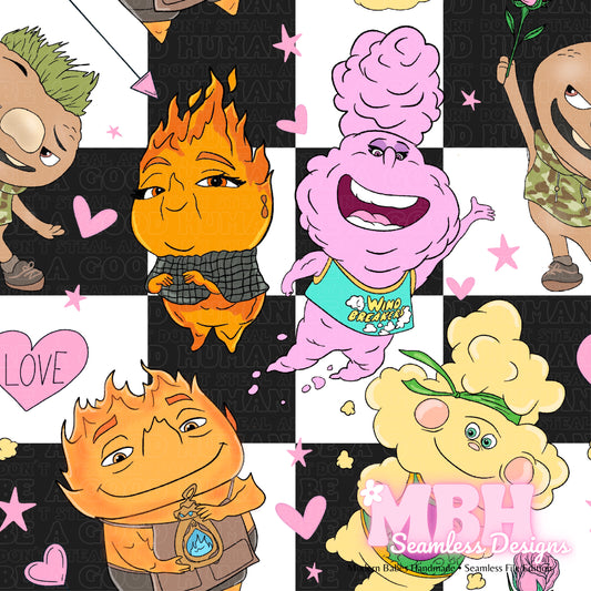 Elemental Friends Checkered Valentine Assorted Colorways Seamless Pattern