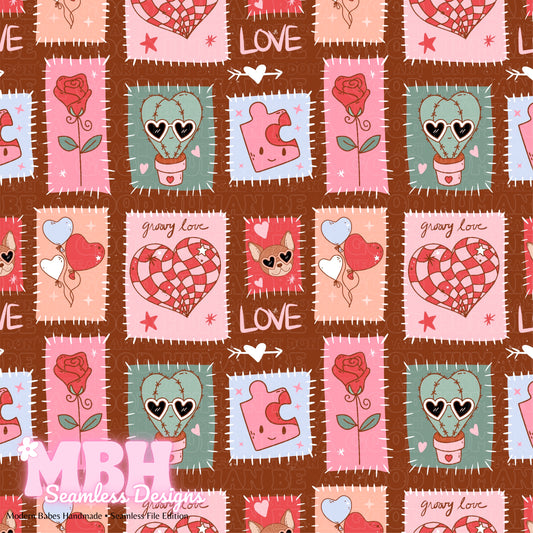 053 Heeler Valentine’s Day Patchwork 3 Colorways Seamless Pattern