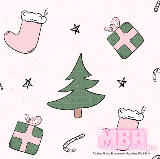 Boho Pink Green Xmas Seamless Pattern