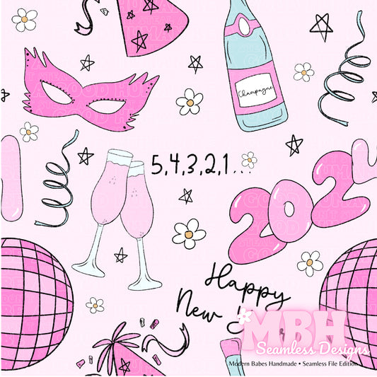 Happy New Year (Pink or Blue) Seamless Pattern