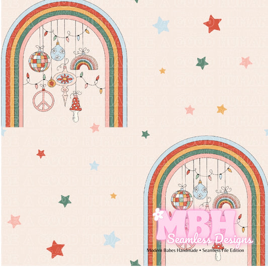 Vintage Christmas Tree Rainbows Seamless Pattern