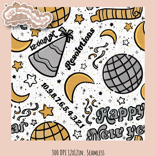Starry Moon New Year Seamless Pattern MULTIPLE COLORWAY OPTIONS
