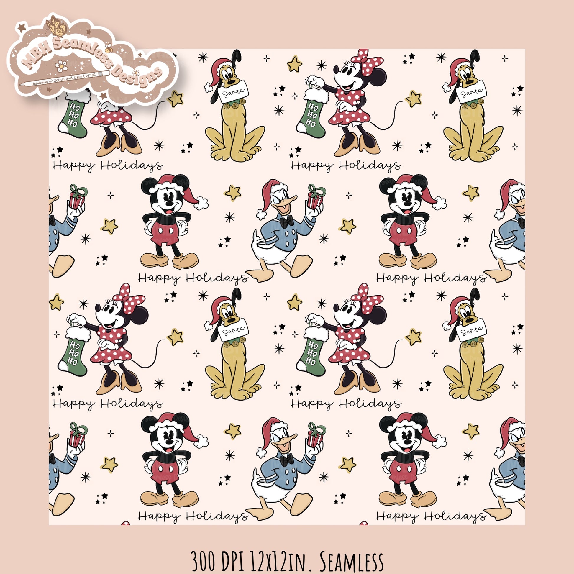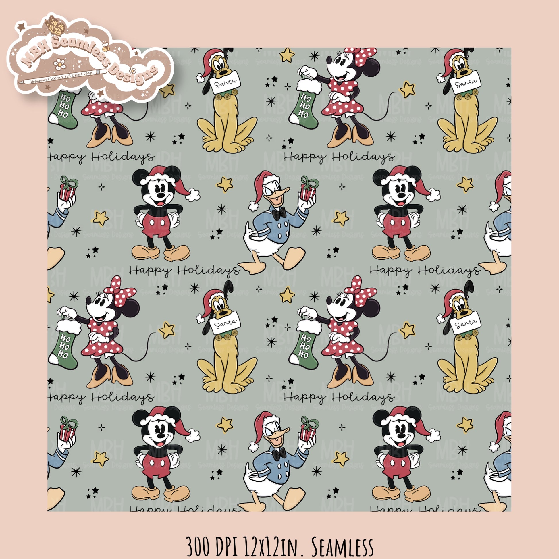 Christmas Mouse & Friends Seamless Pattern // PNG //MULTIPLE COLORWAYS