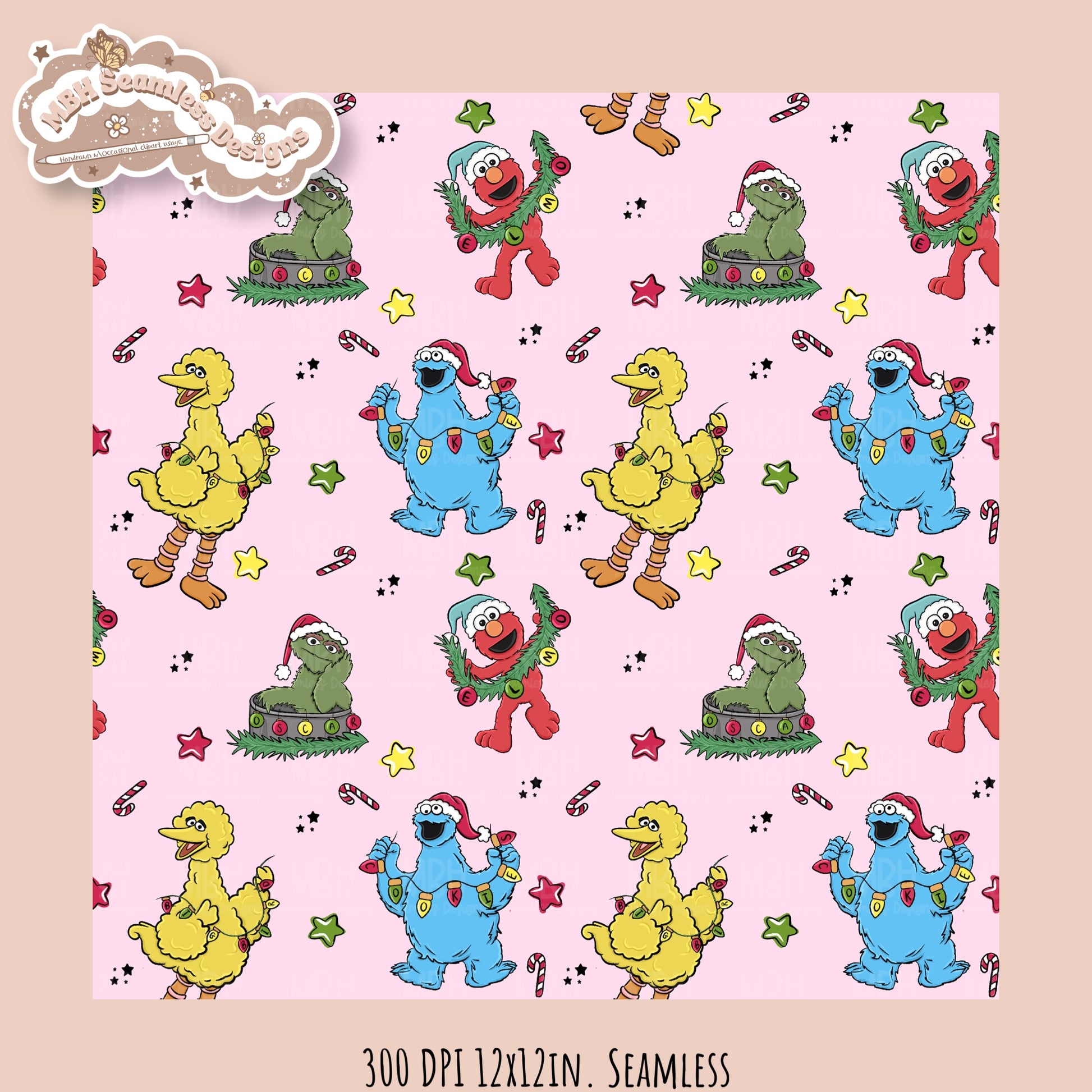 Christmas Sesame Street Seamless Pattern // PNG // Assorted Colorways