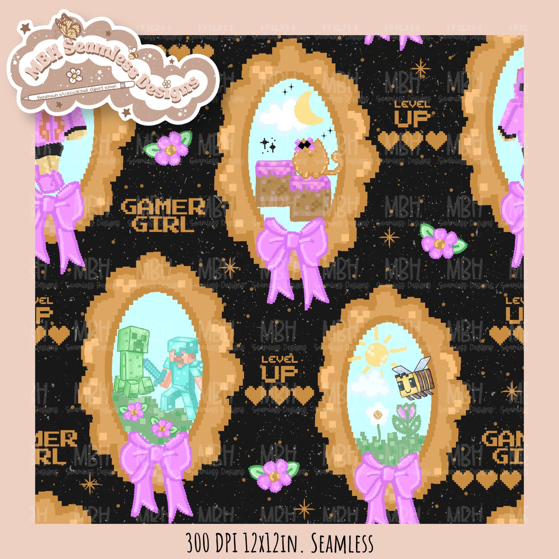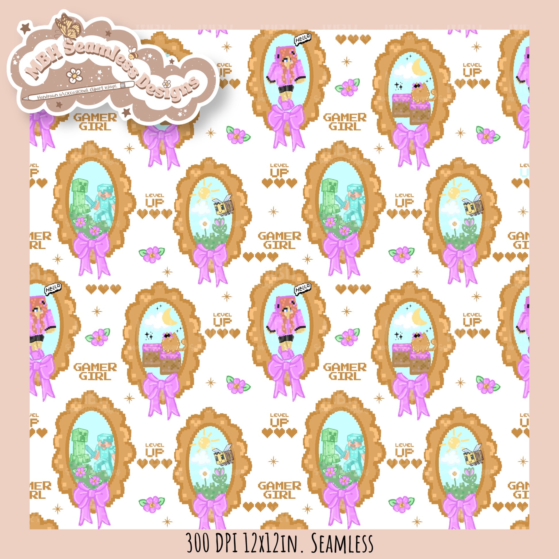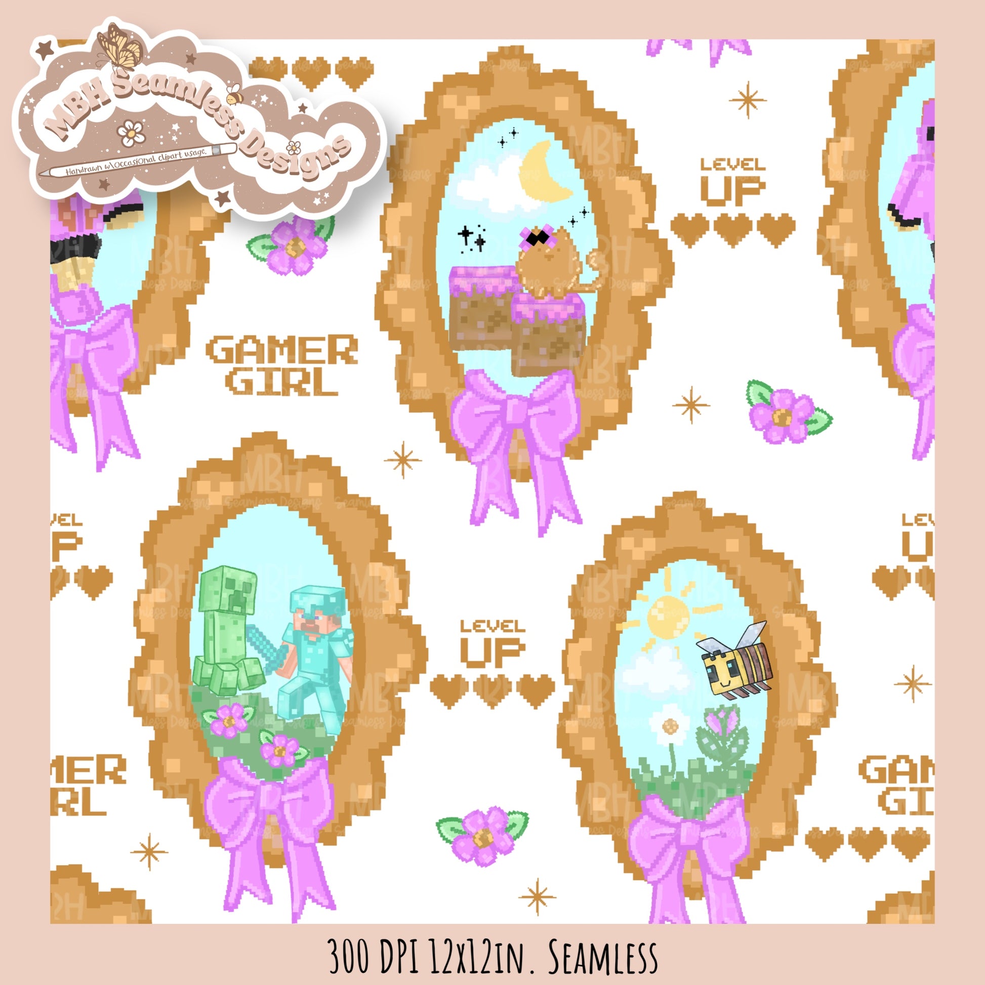 Coquette Minecraft Frames Seamless Pattern MULTIPLE COLORWAYS