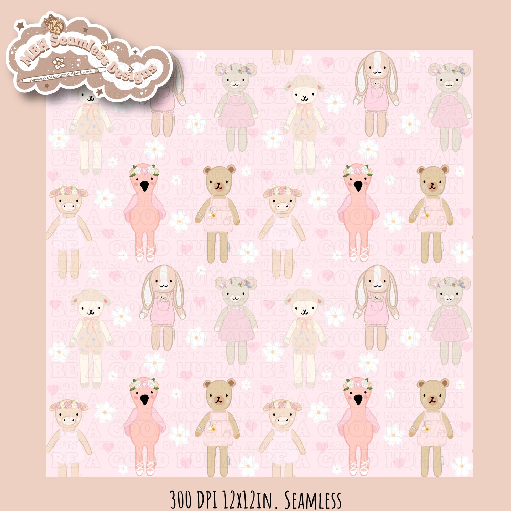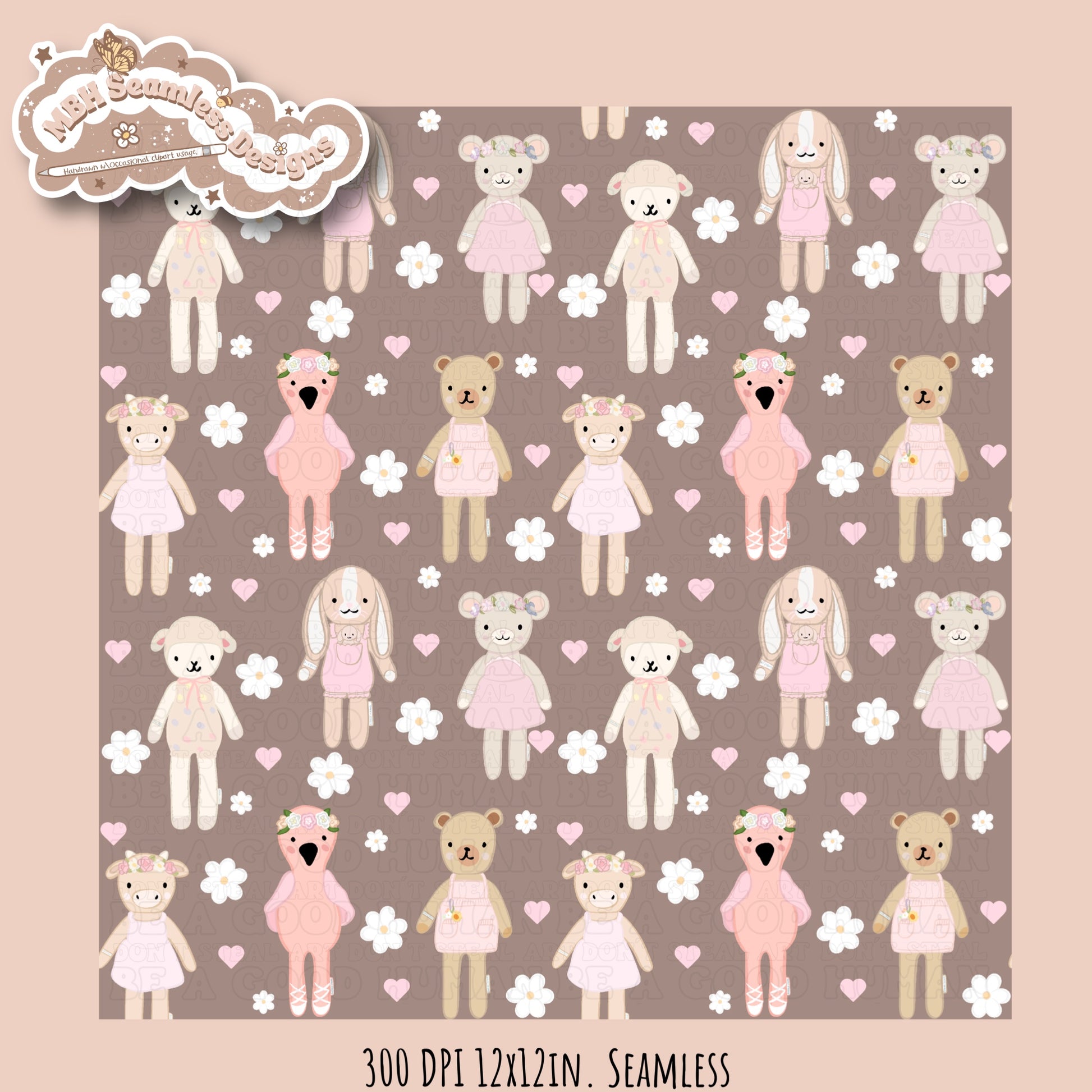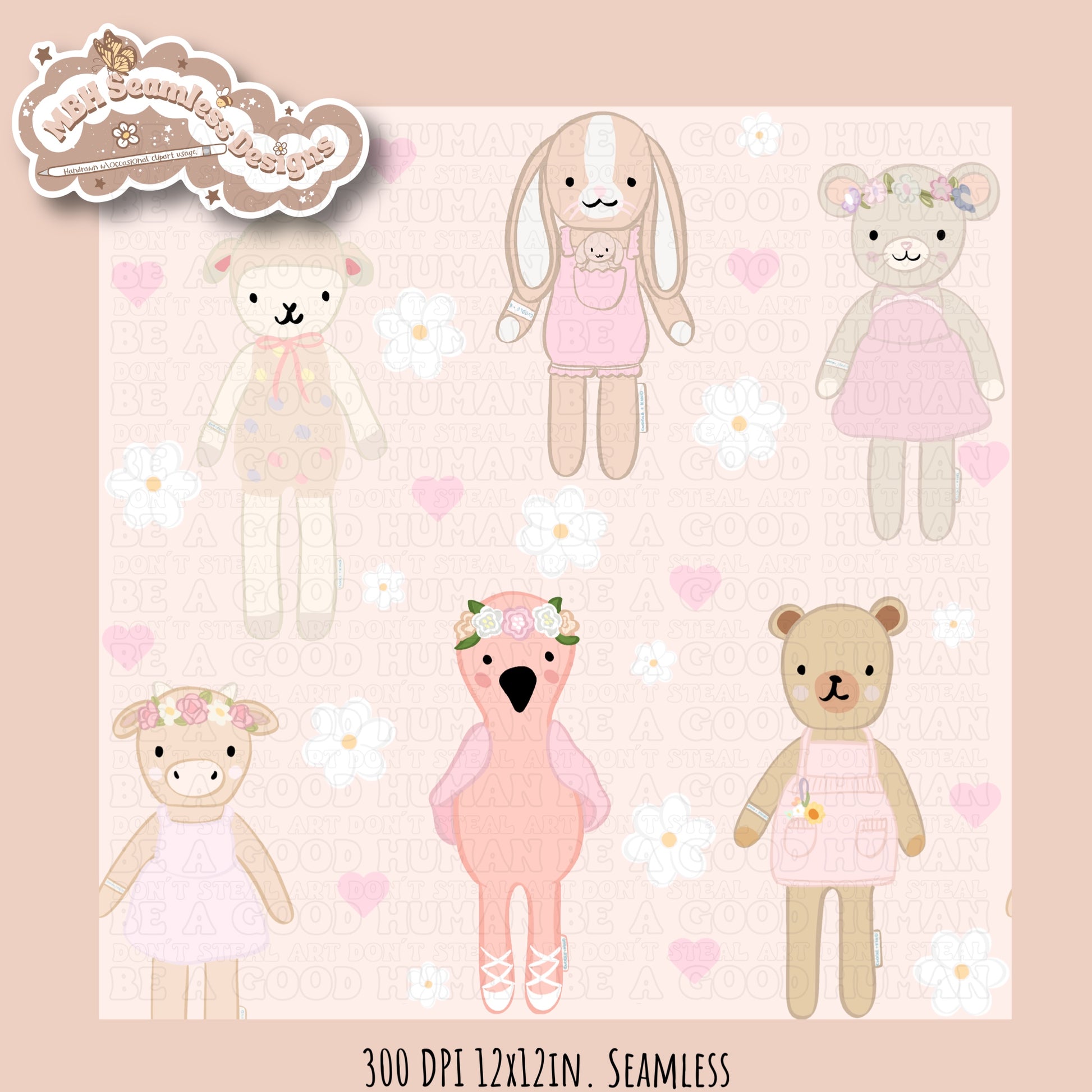 Cuddle + Kind Dolls Dainty Floral Hearts Seamless Pattern // Multiple Colorways