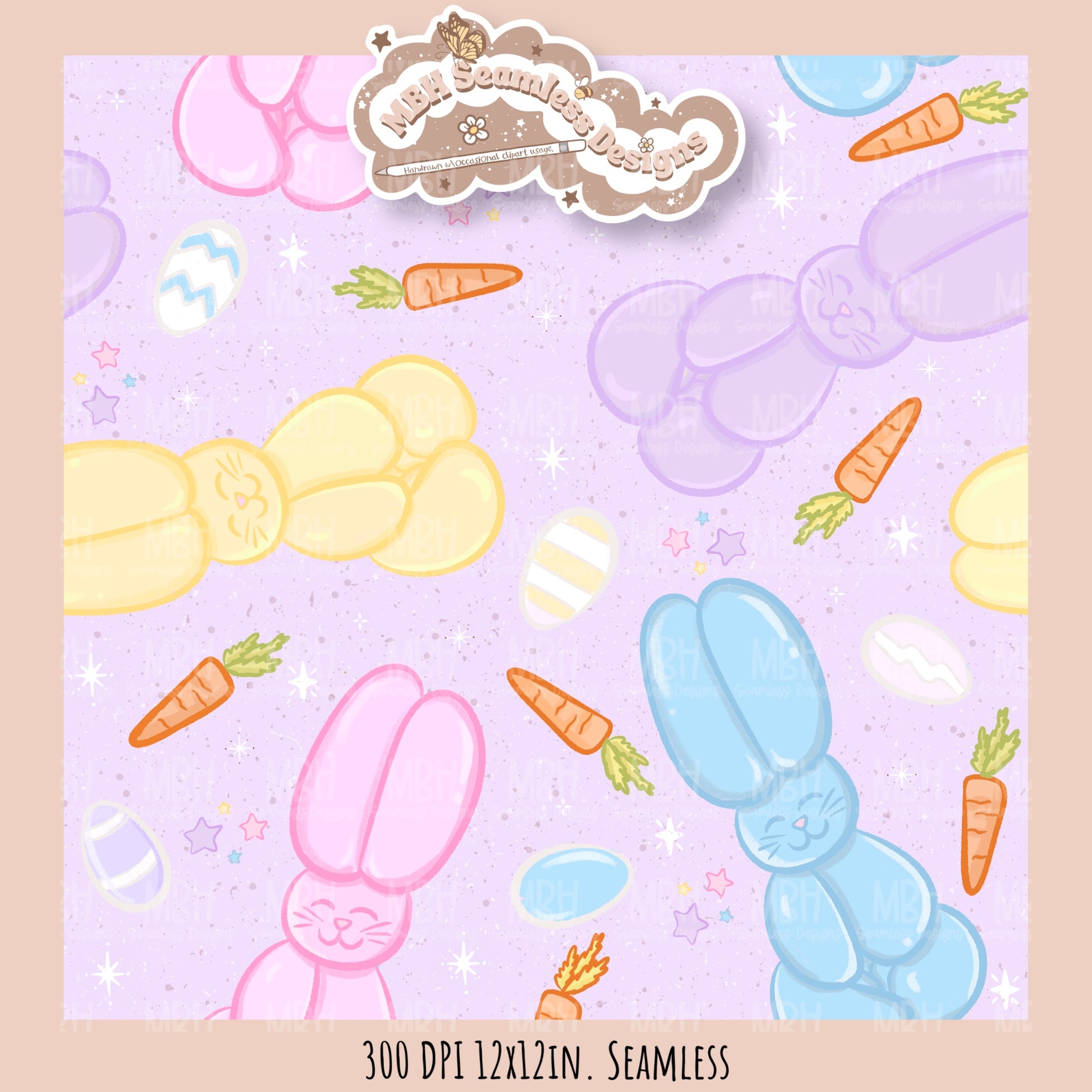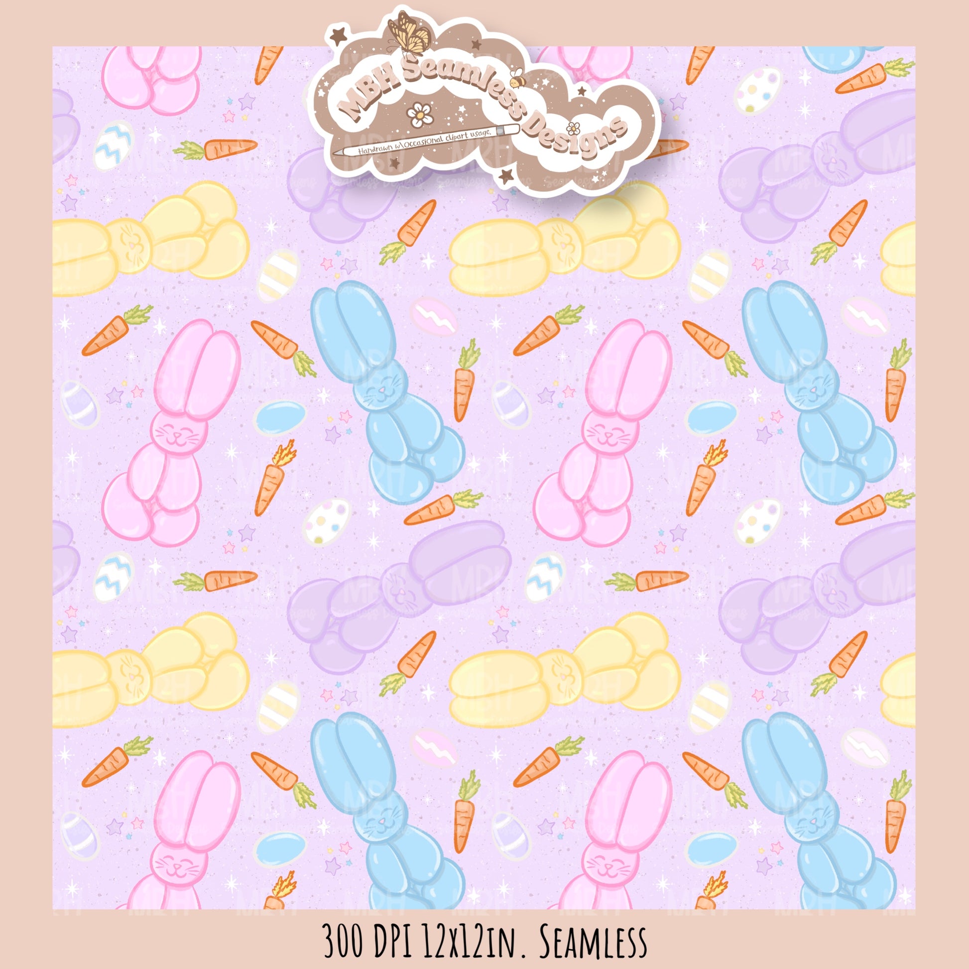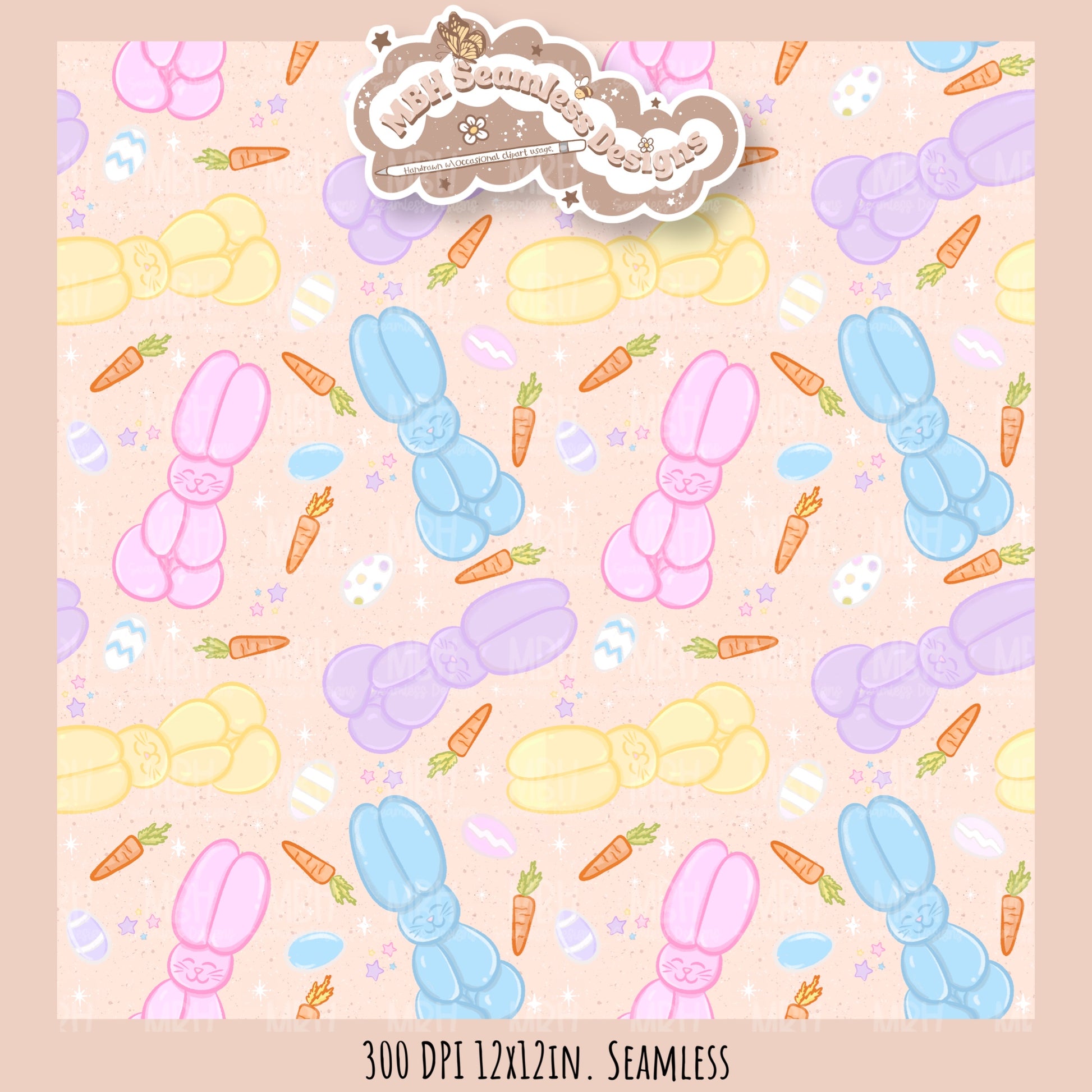 Balloon Bunnies Seamless Pattern // PNG // Multiple Colorway Options