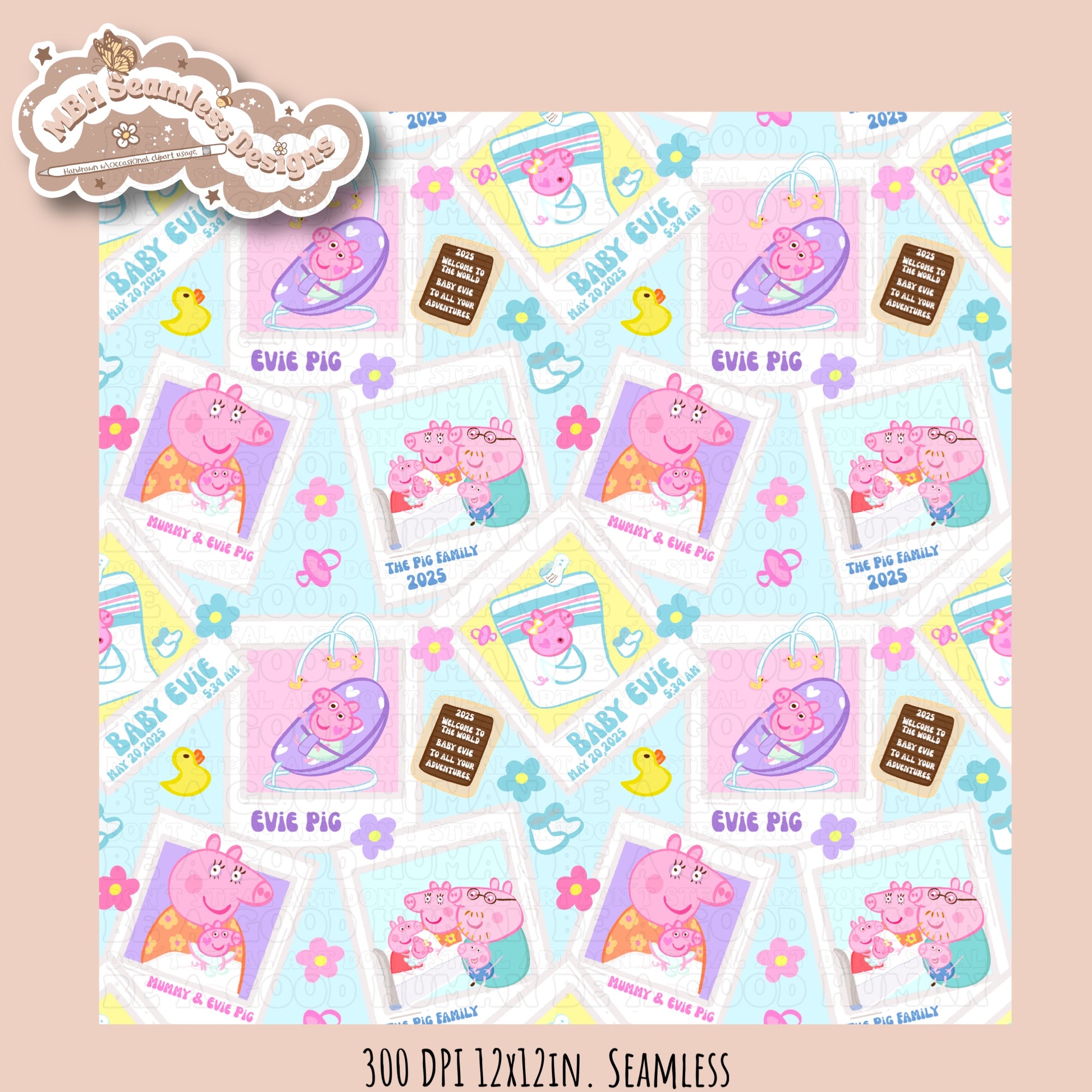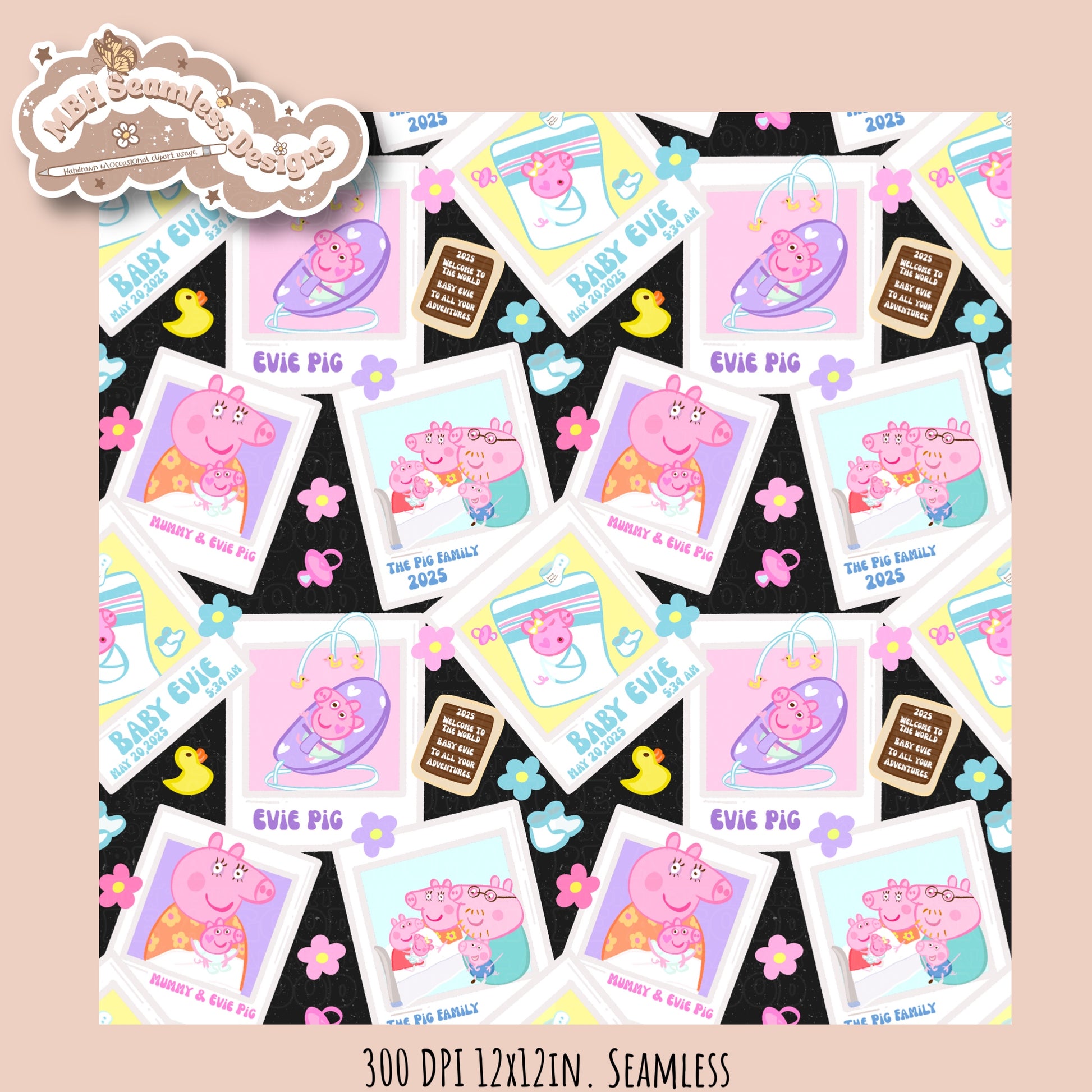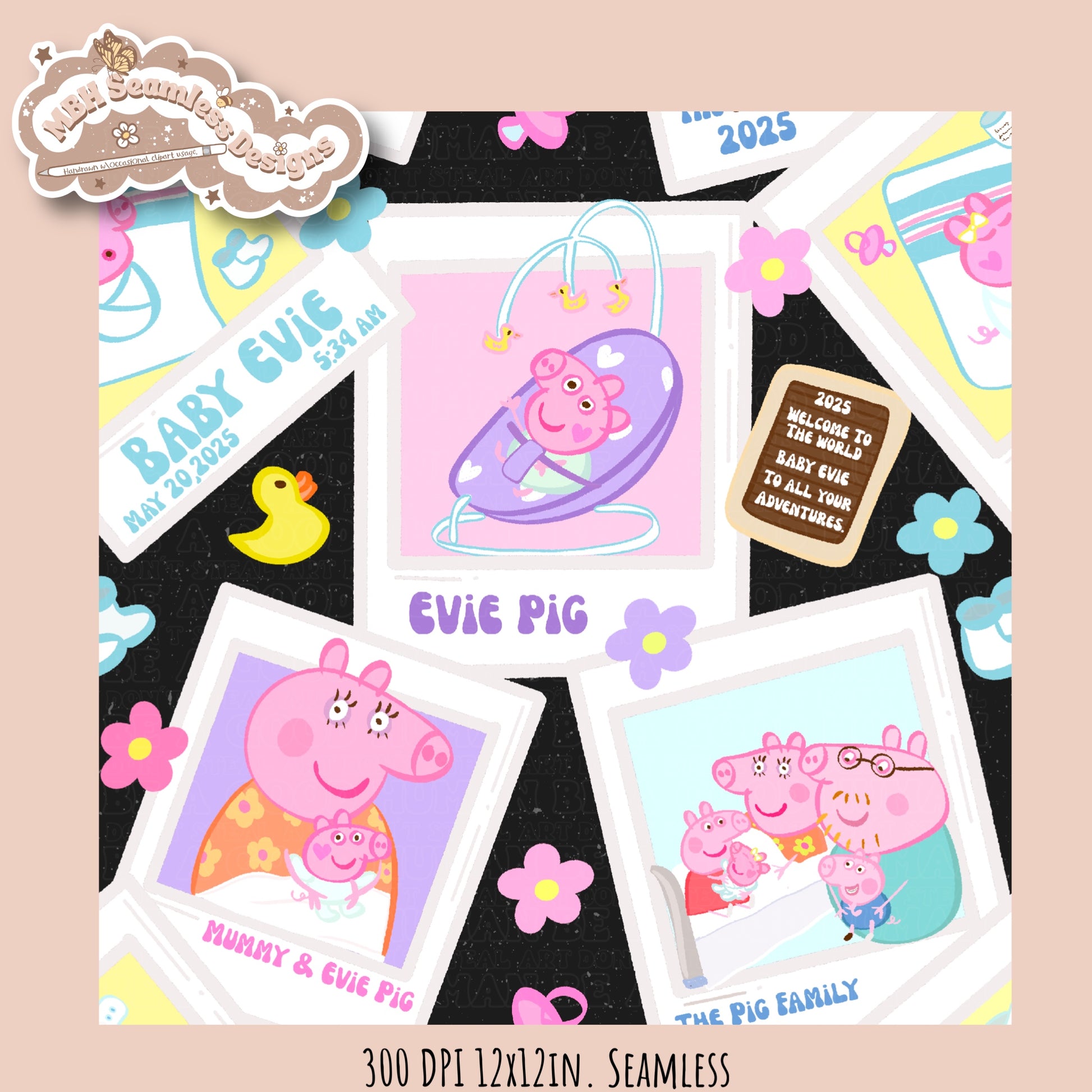 Evie Pig Polaroids Seamless Pattern • Multiple Colorway Options