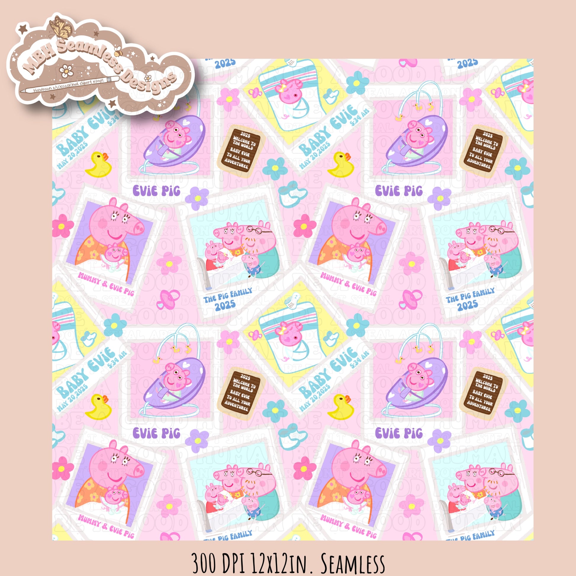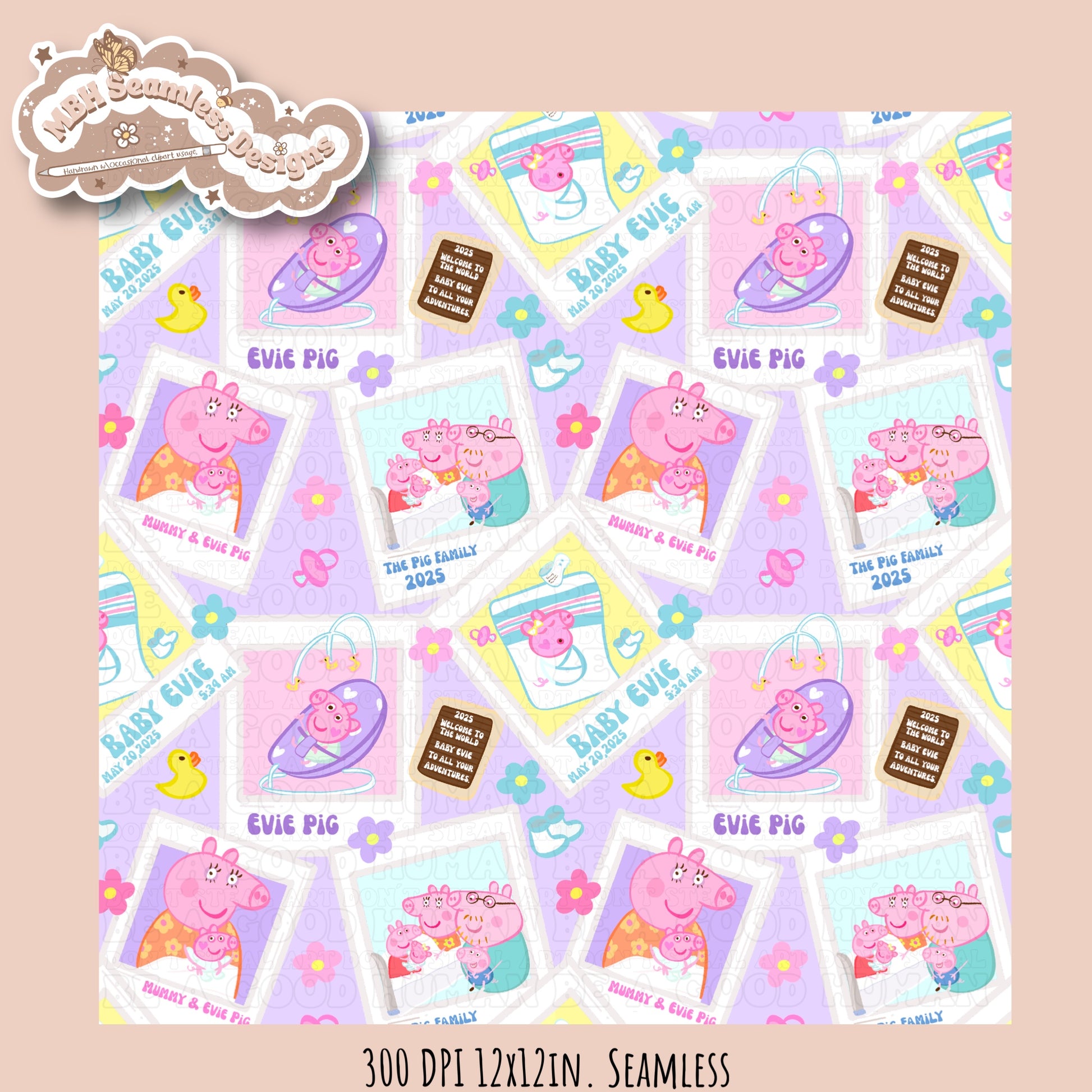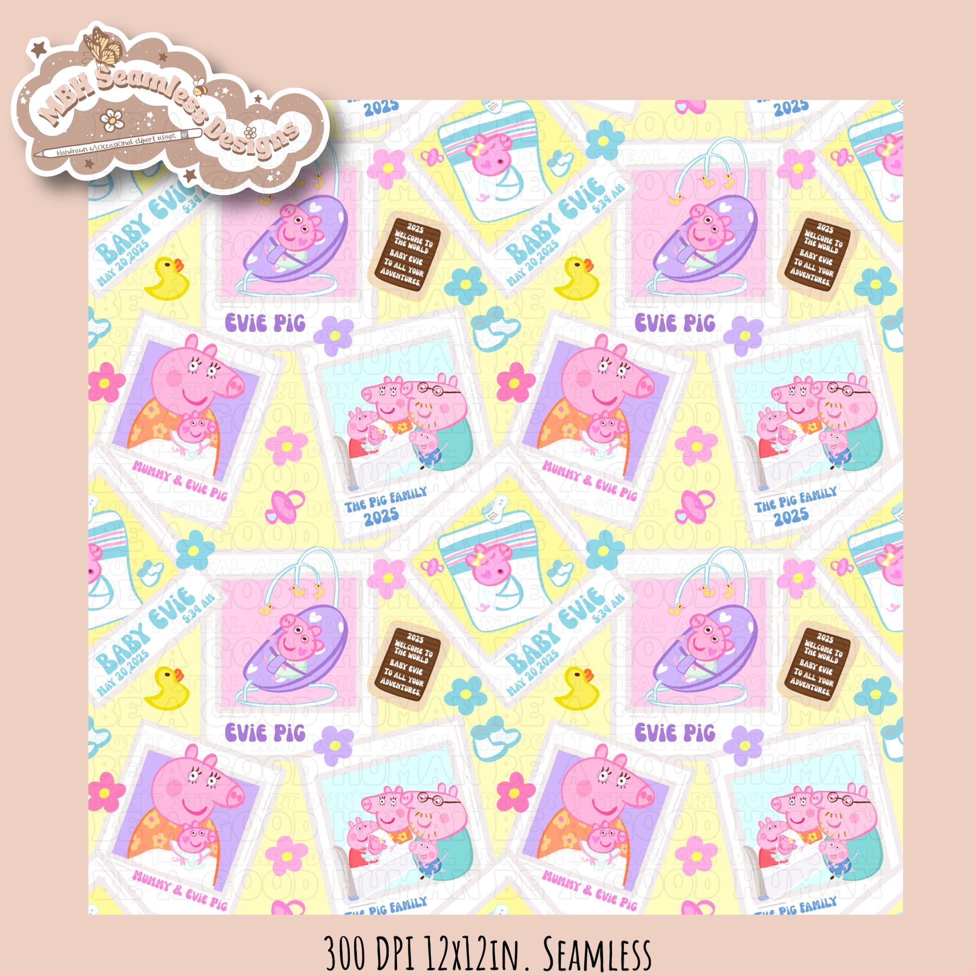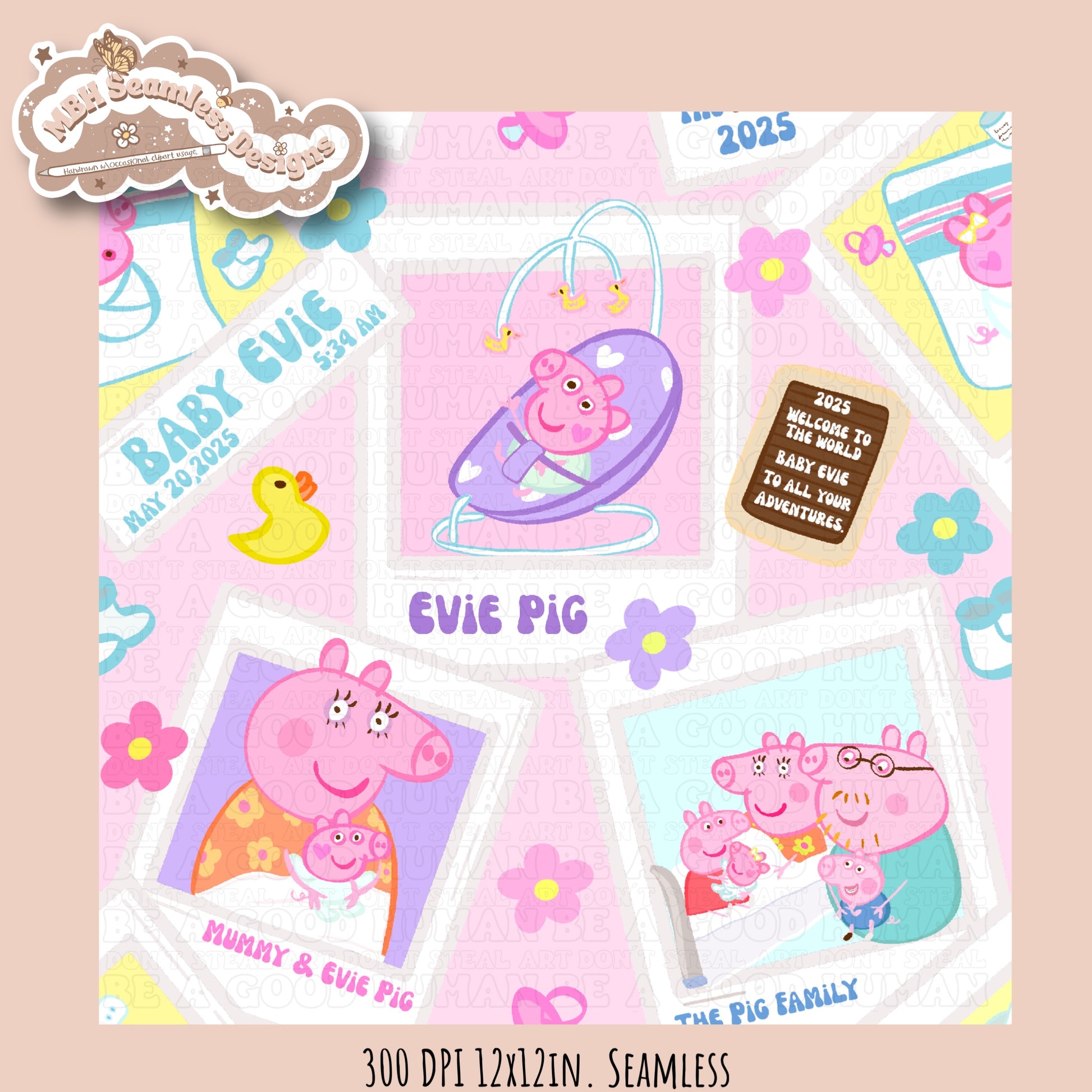 Evie Pig Polaroids Seamless Pattern • Multiple Colorway Options