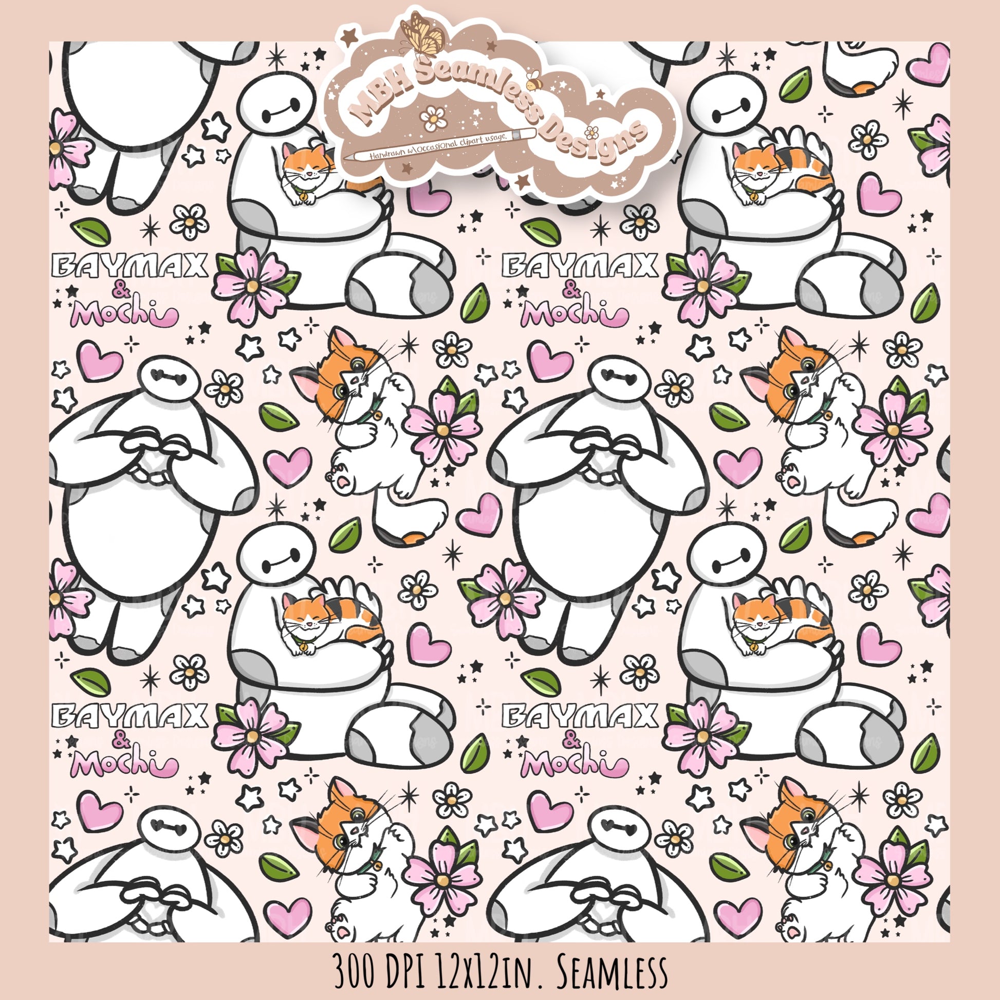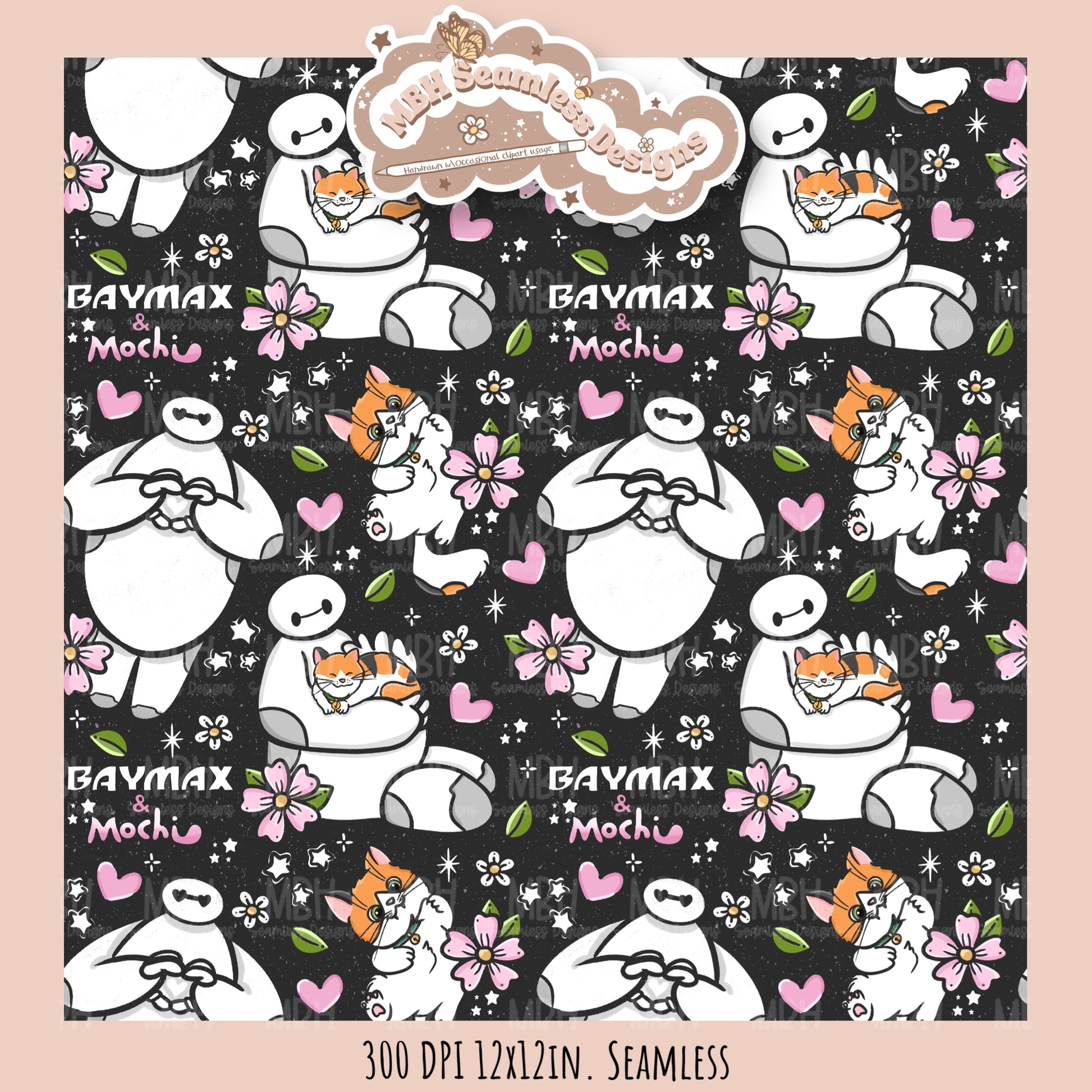 Floral Baymax Mochi Seamless Pattern // Multiple Colorway Options
