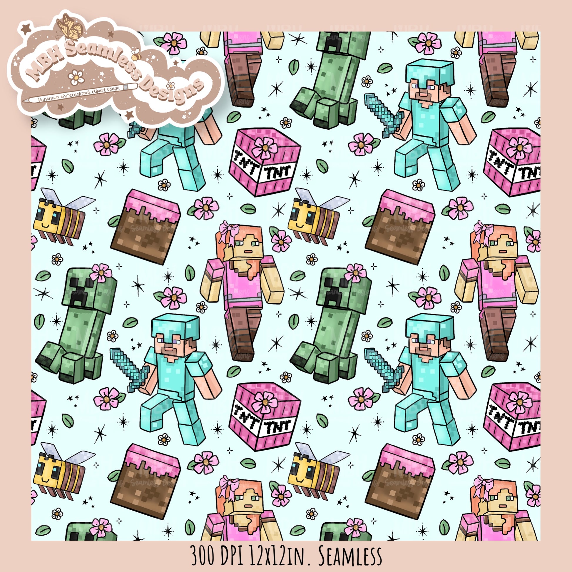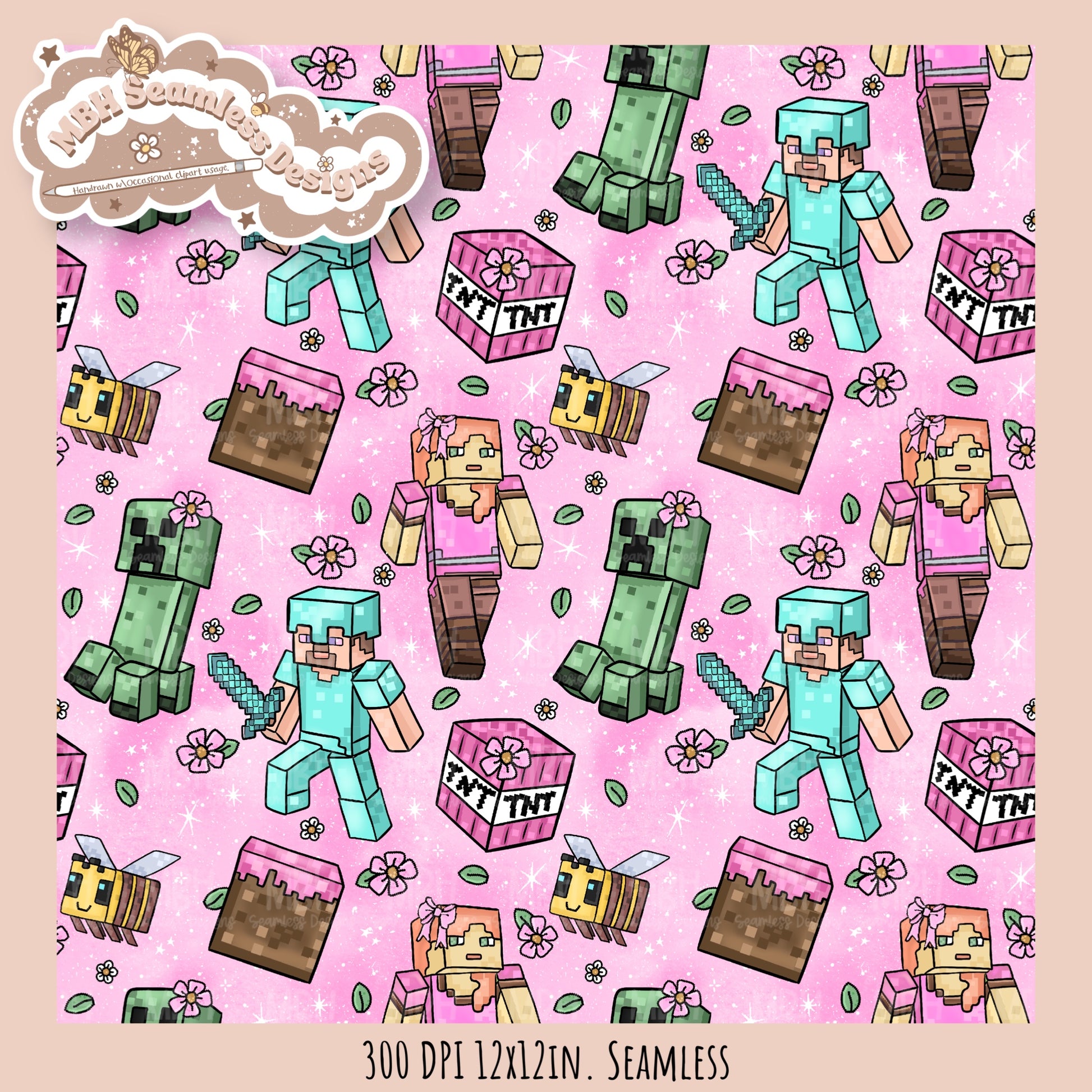 Girly Minecraft Seamless Pattern MULTIPLE COLORWAYS