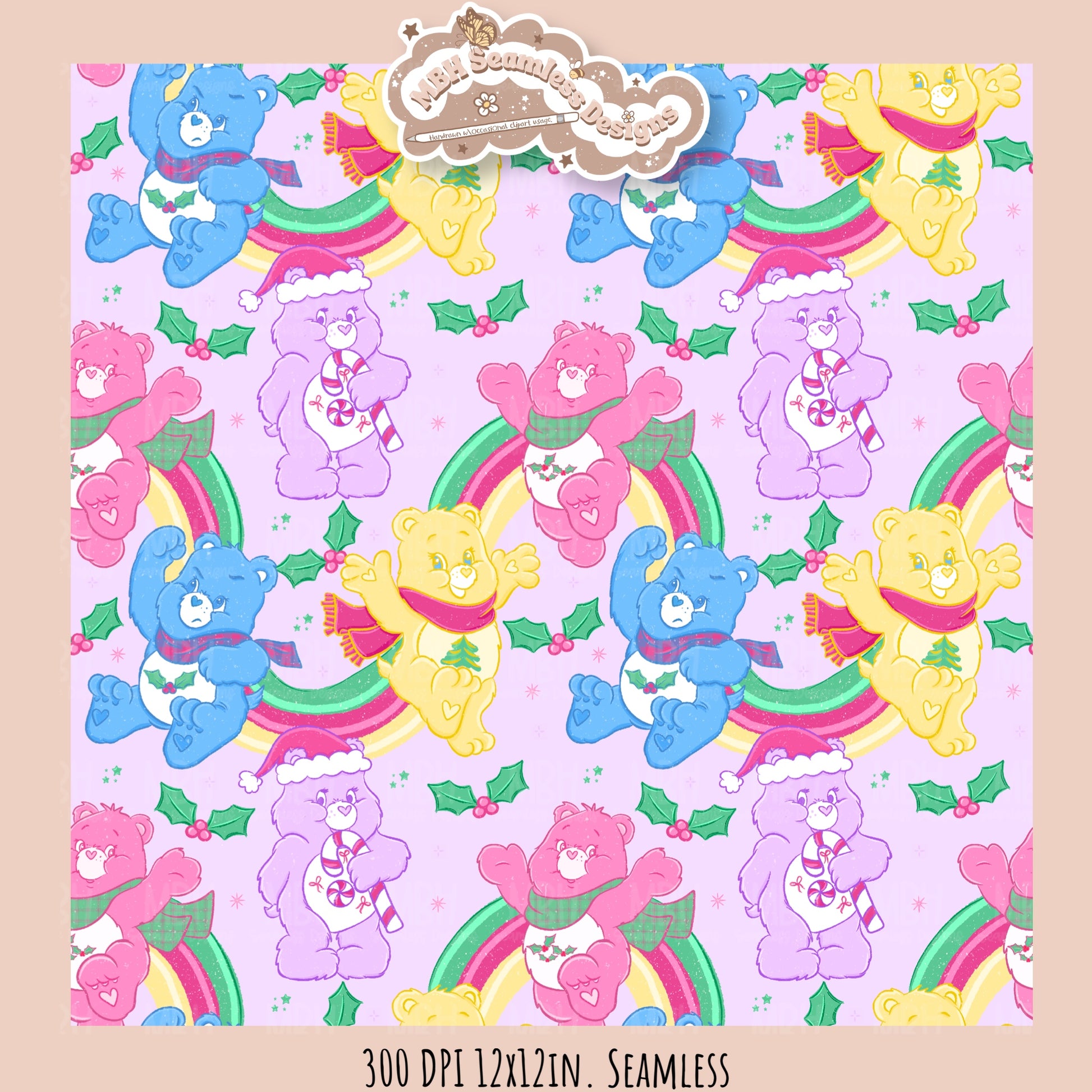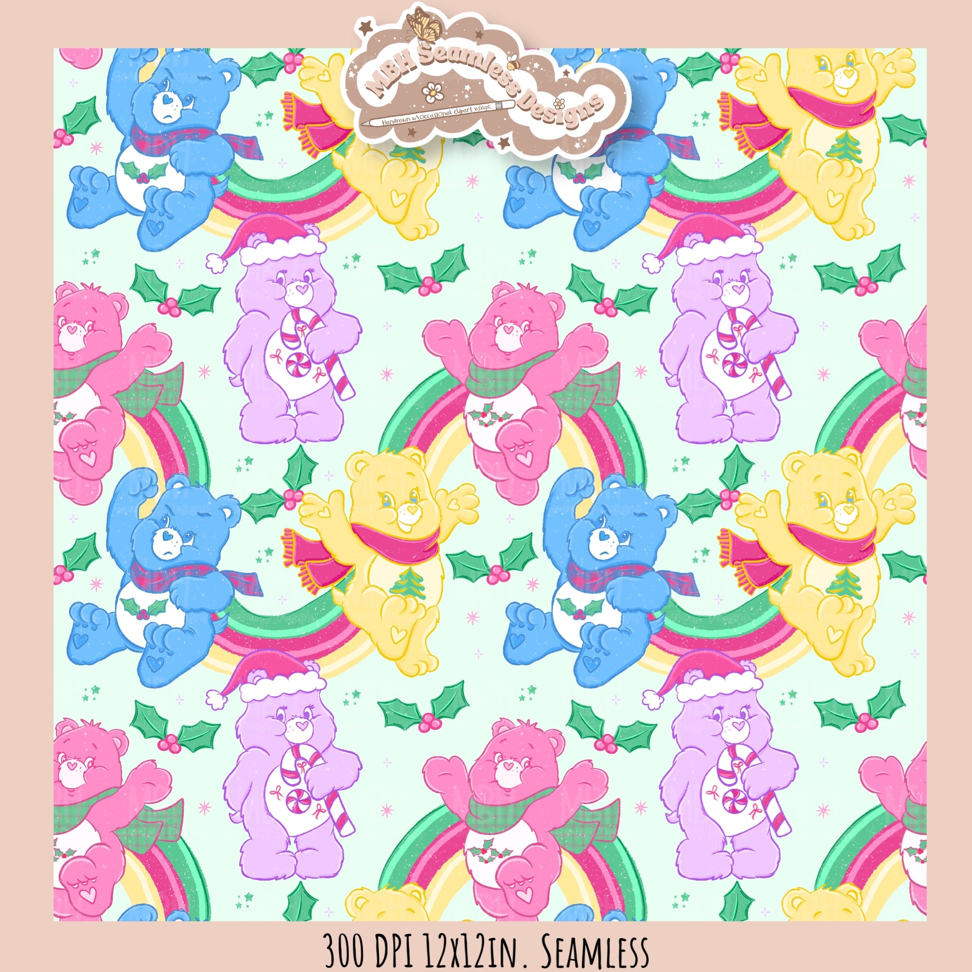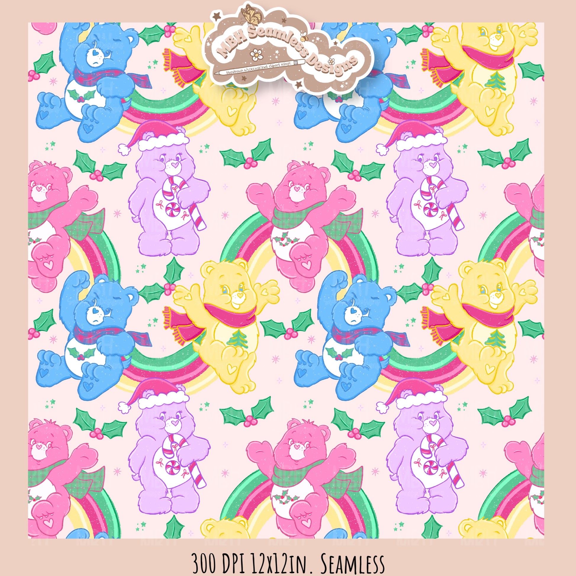 Holiday Care Bears Seamless Pattern // Assorted Colorway Options