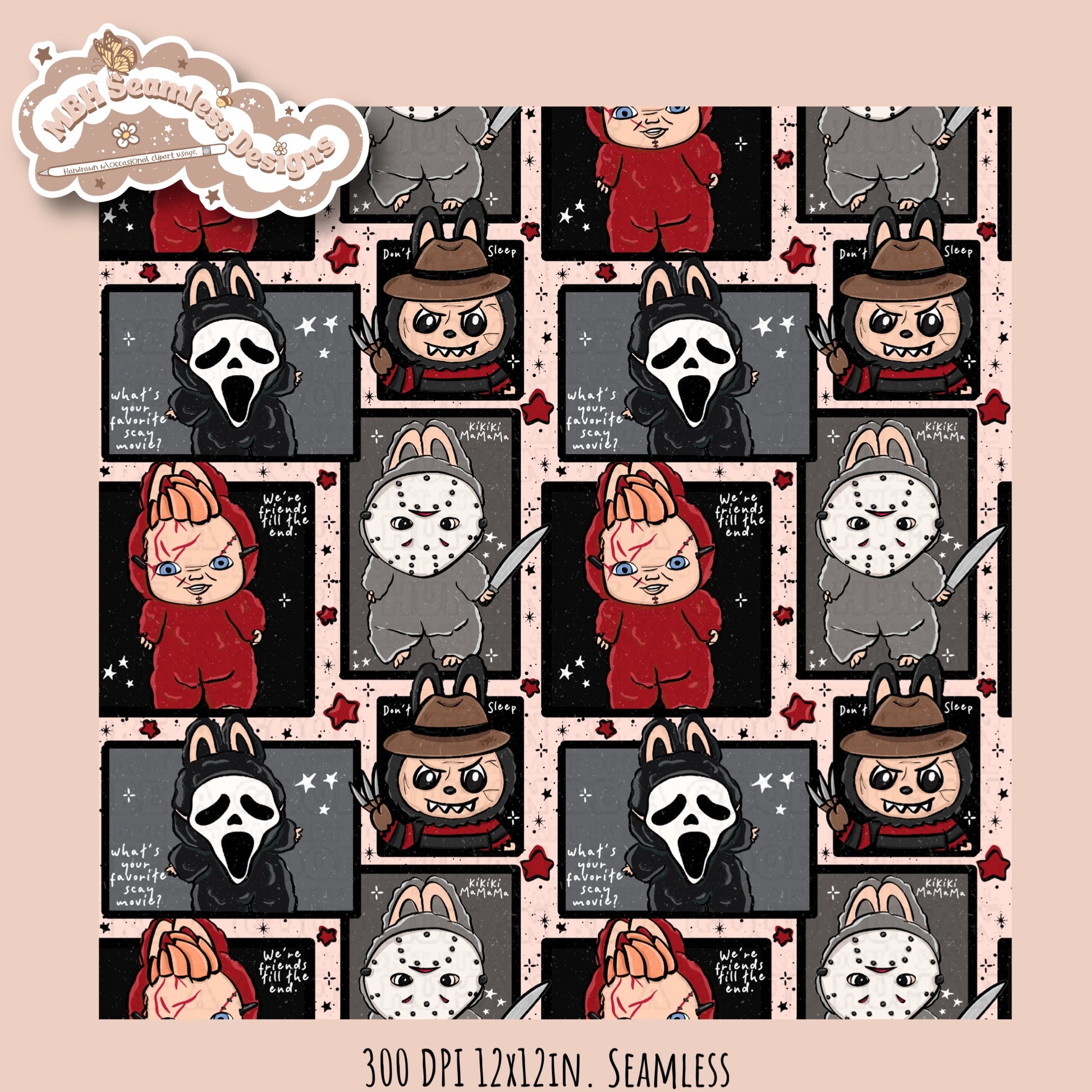 Labubu x Horror Seamless Pattern // PNG // Multiple Colorway Options