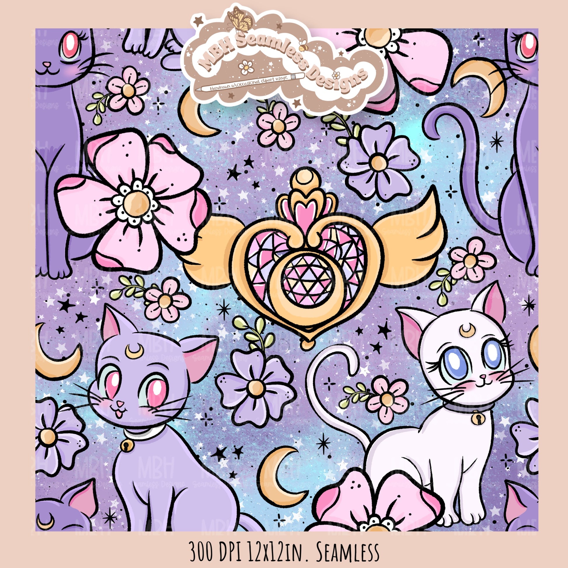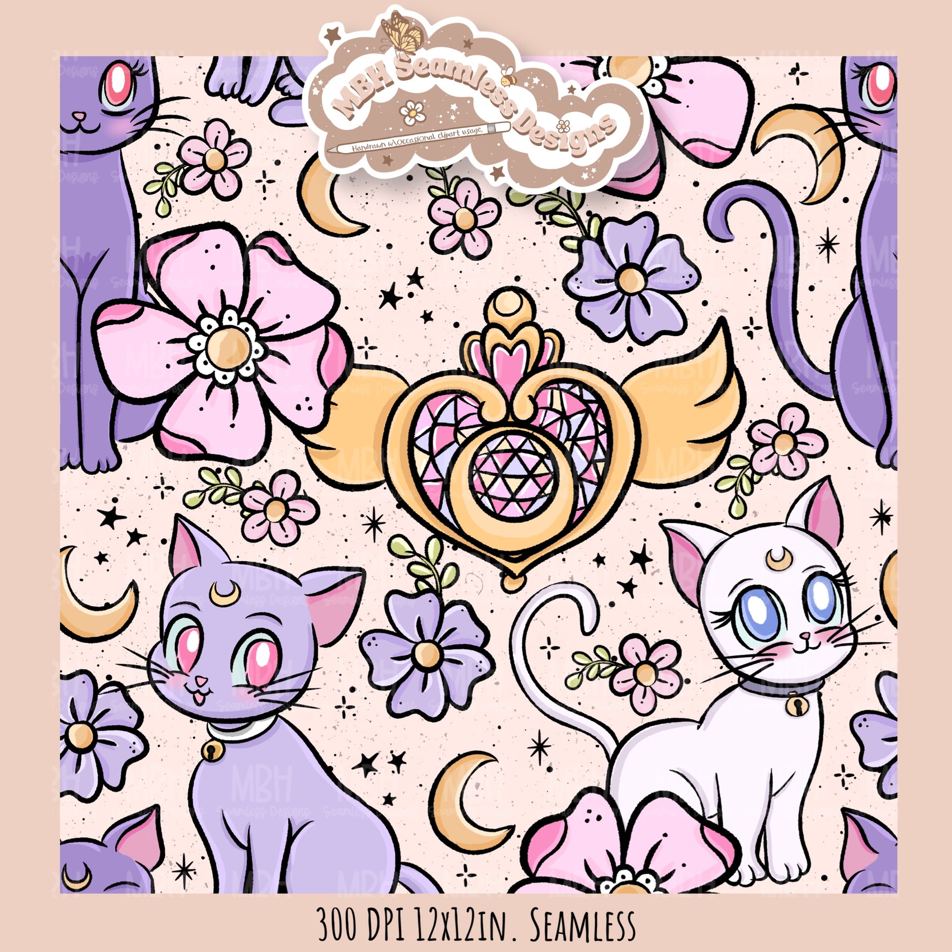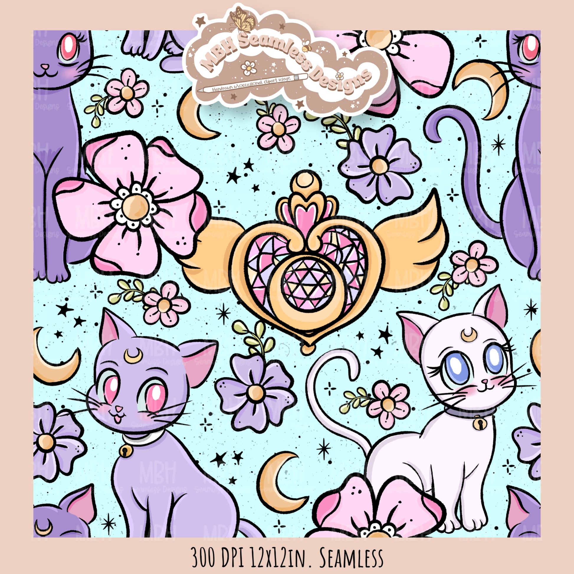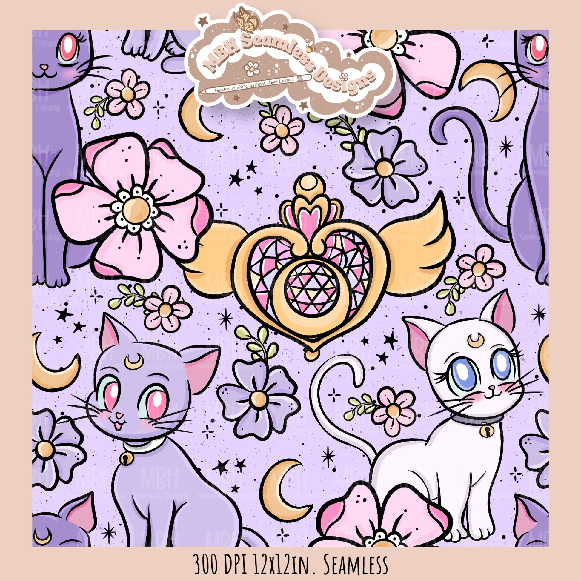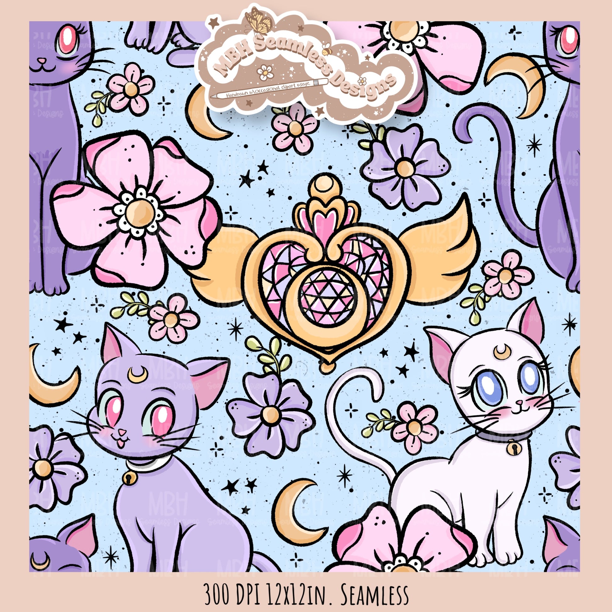 Sailor Moon Cats Seamless Pattern // PNG // MULTIPLE COLORWAY OPTIONS