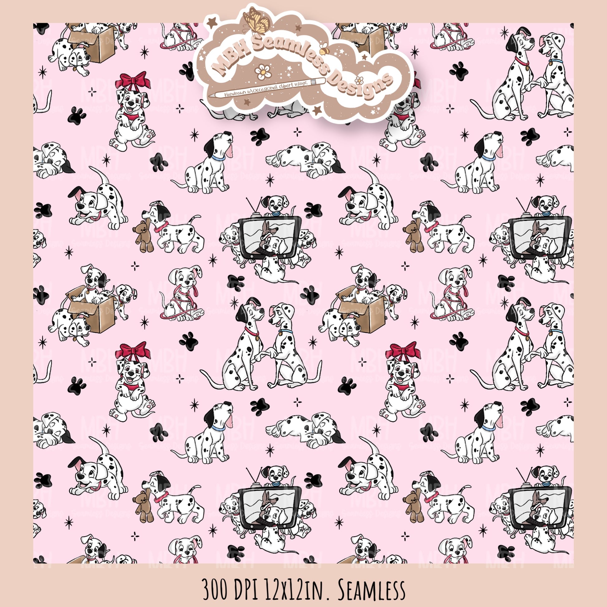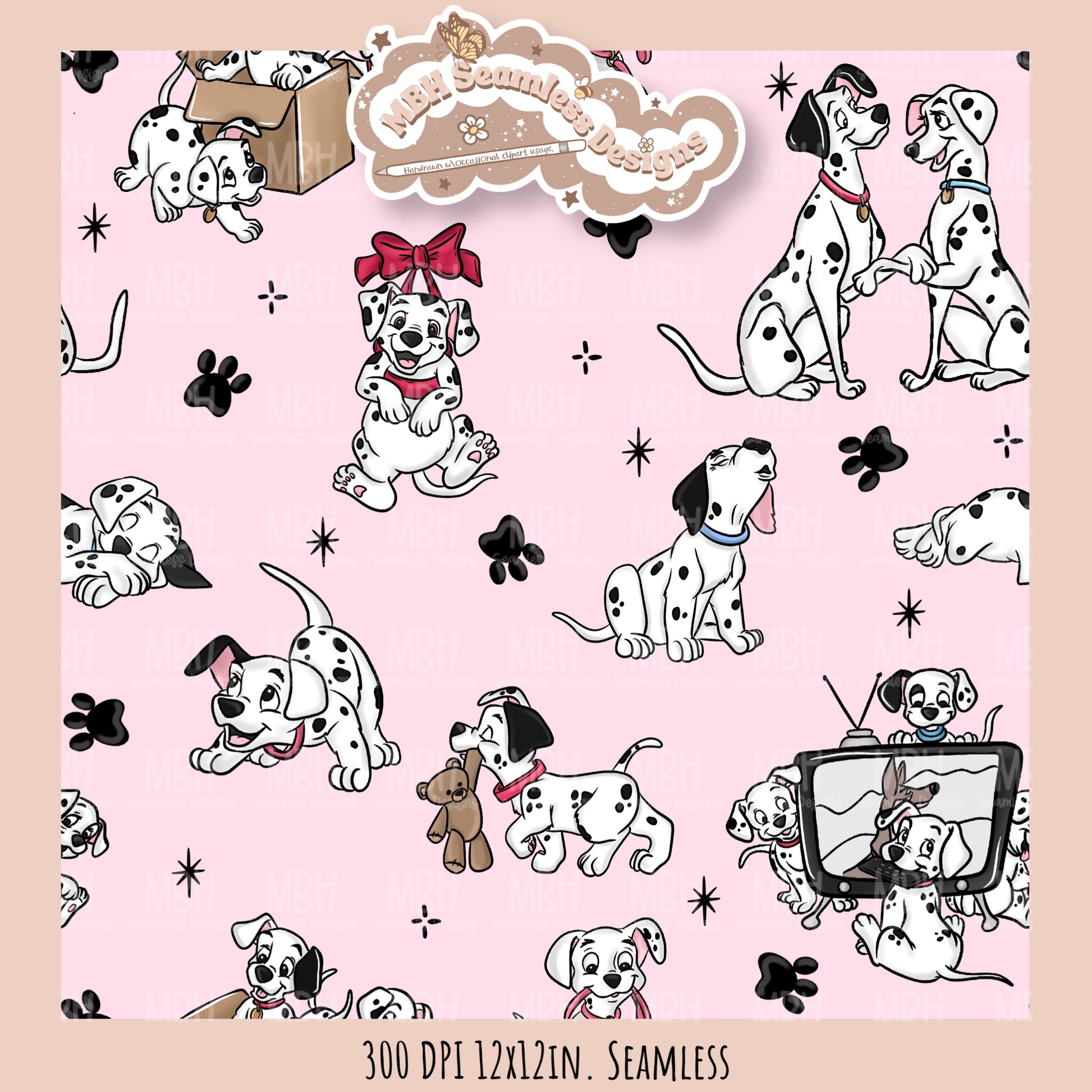Starry Dalmatians Seamless Pattern // Multiple Colorway Options