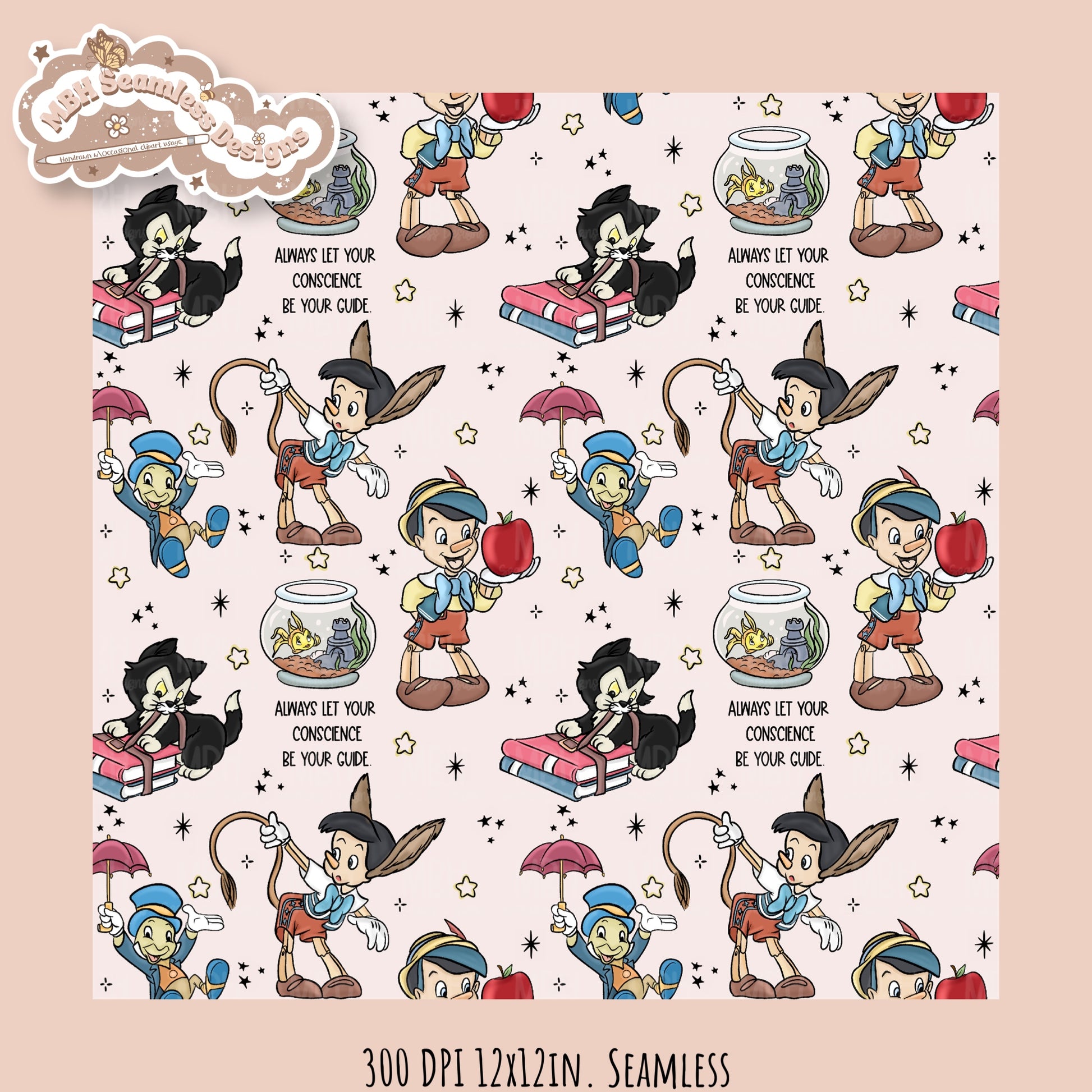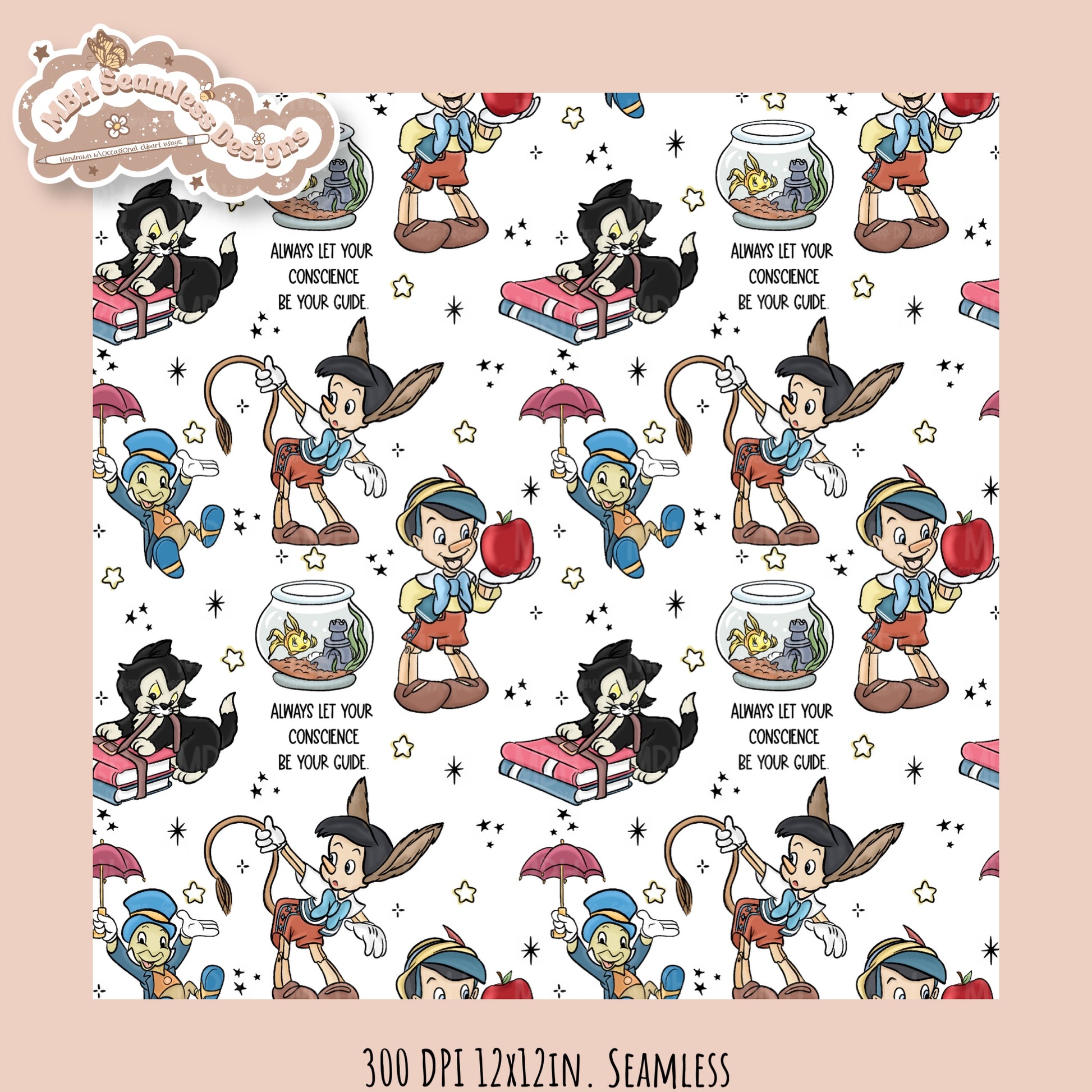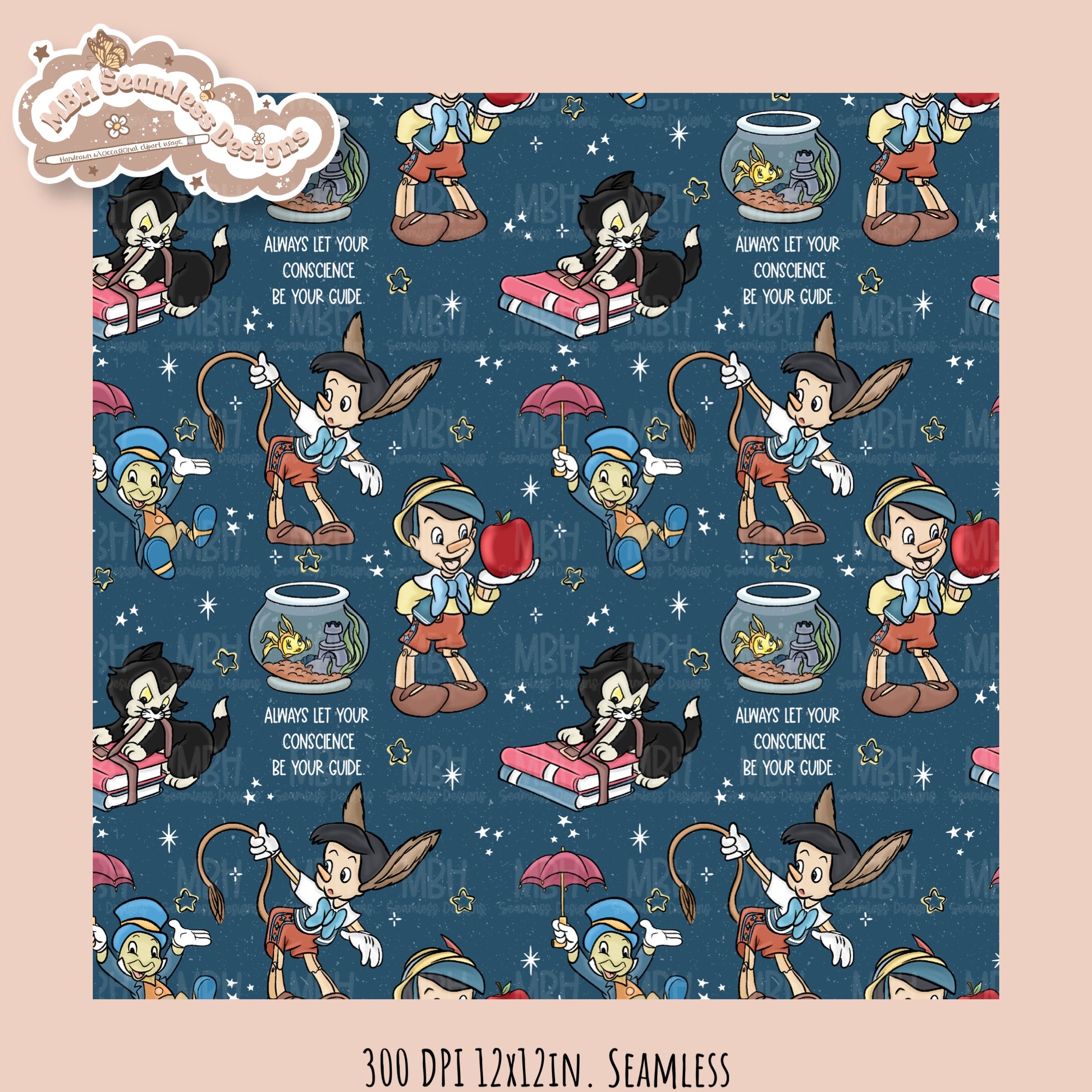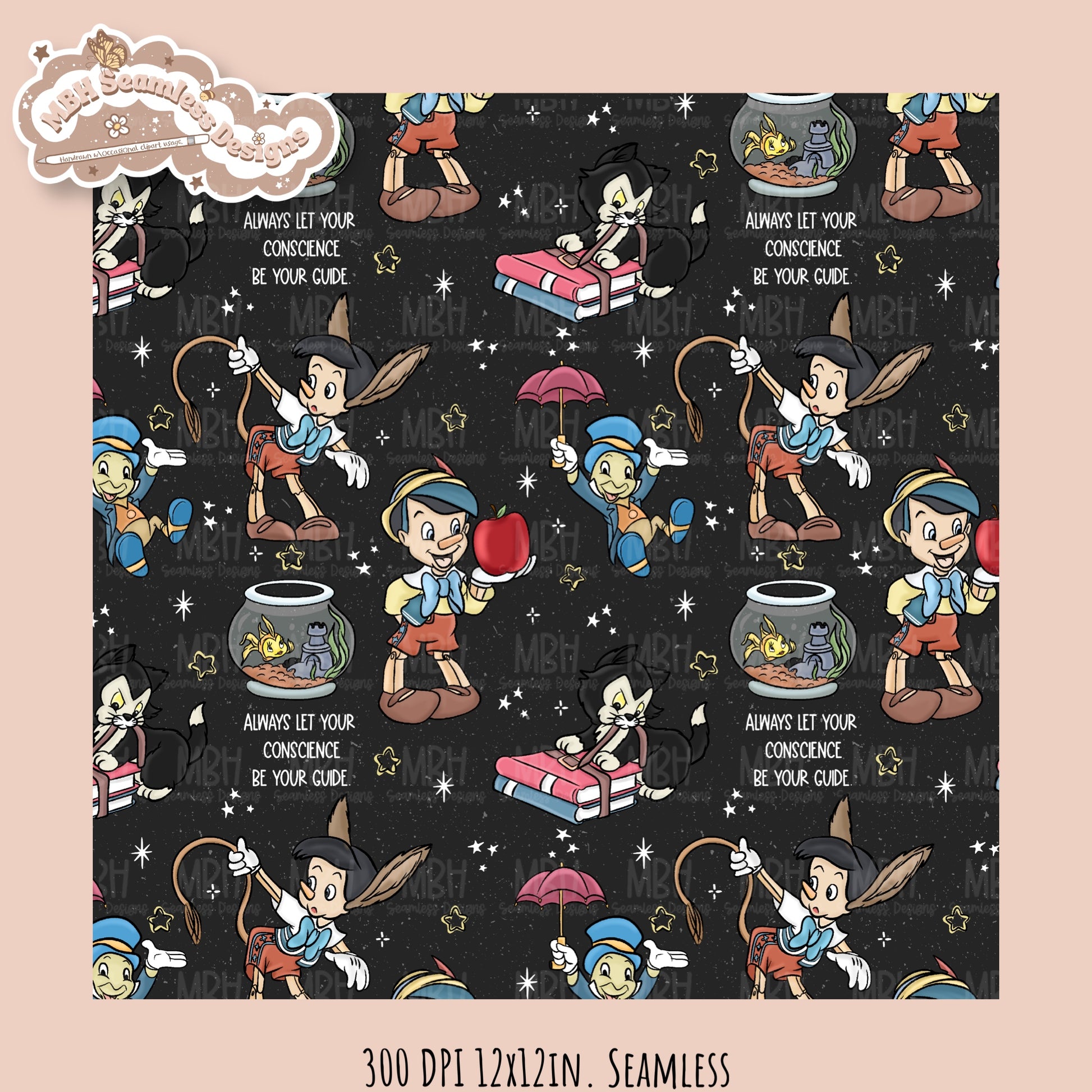 Starry Pinnochio Seamless Pattern // Assorted Colorways