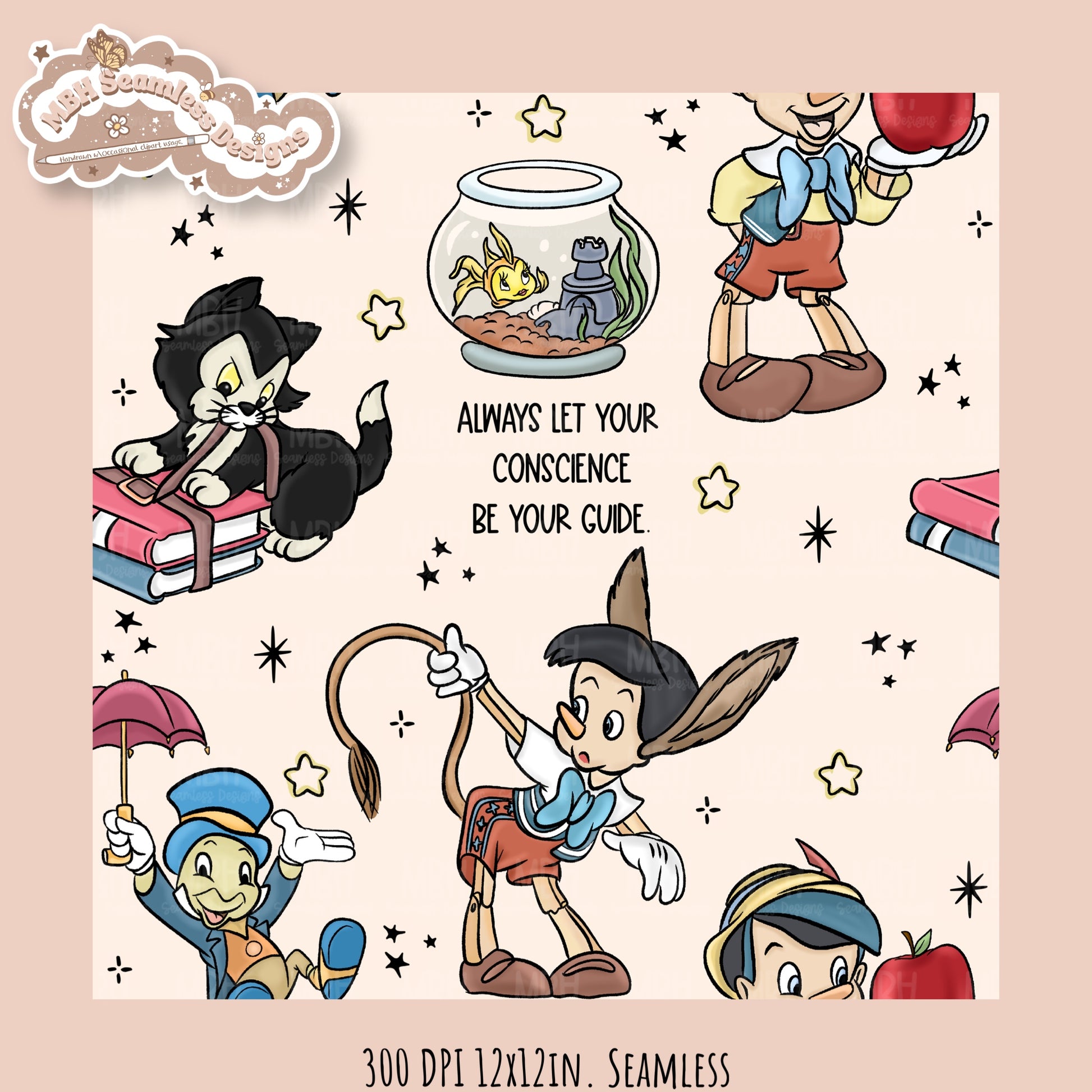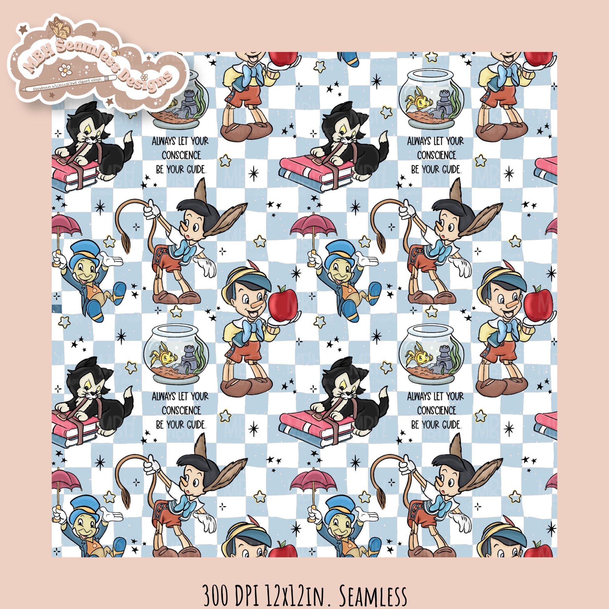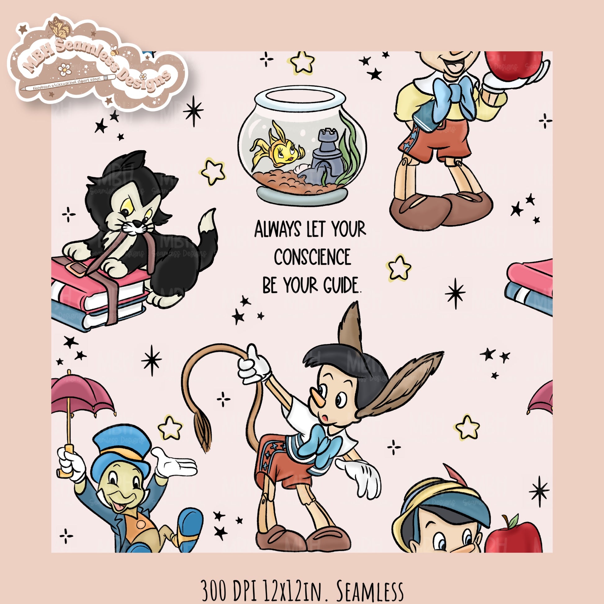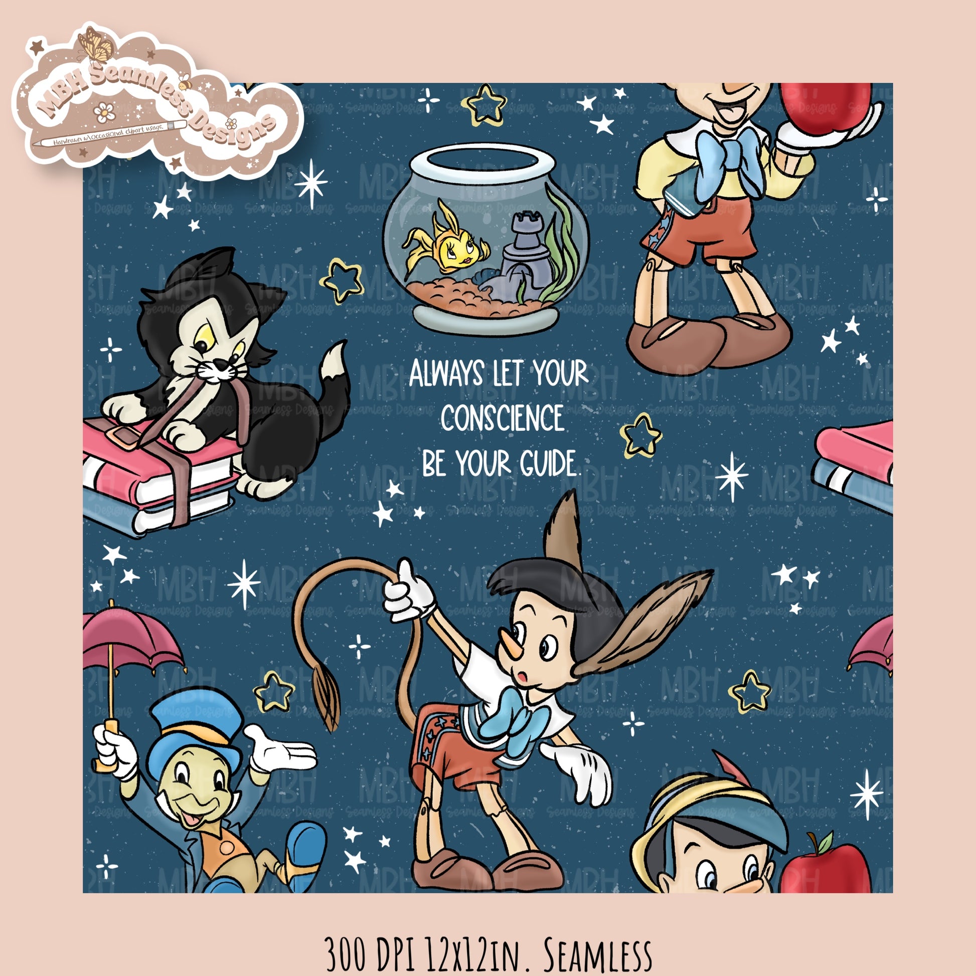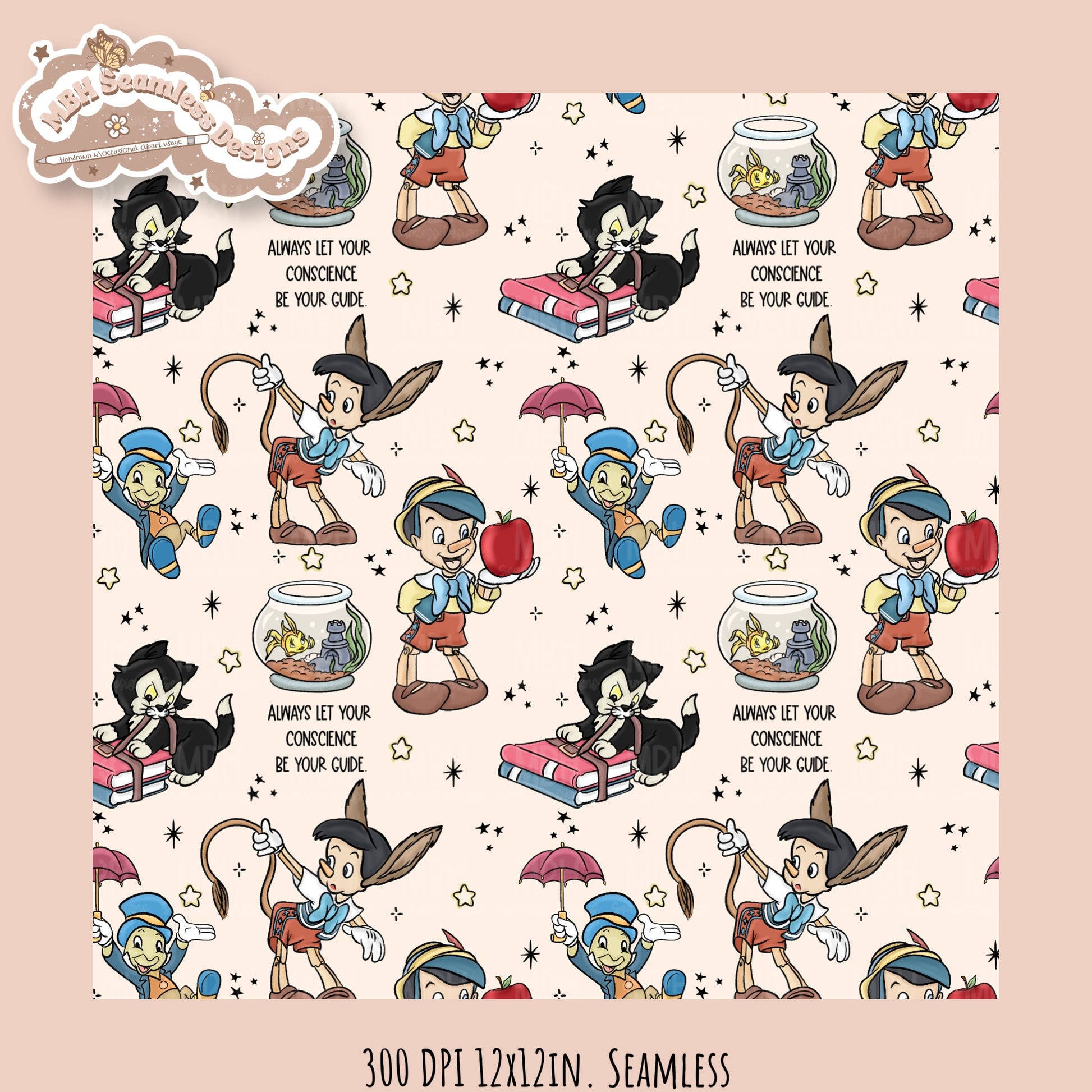 Starry Pinnochio Seamless Pattern // Assorted Colorways