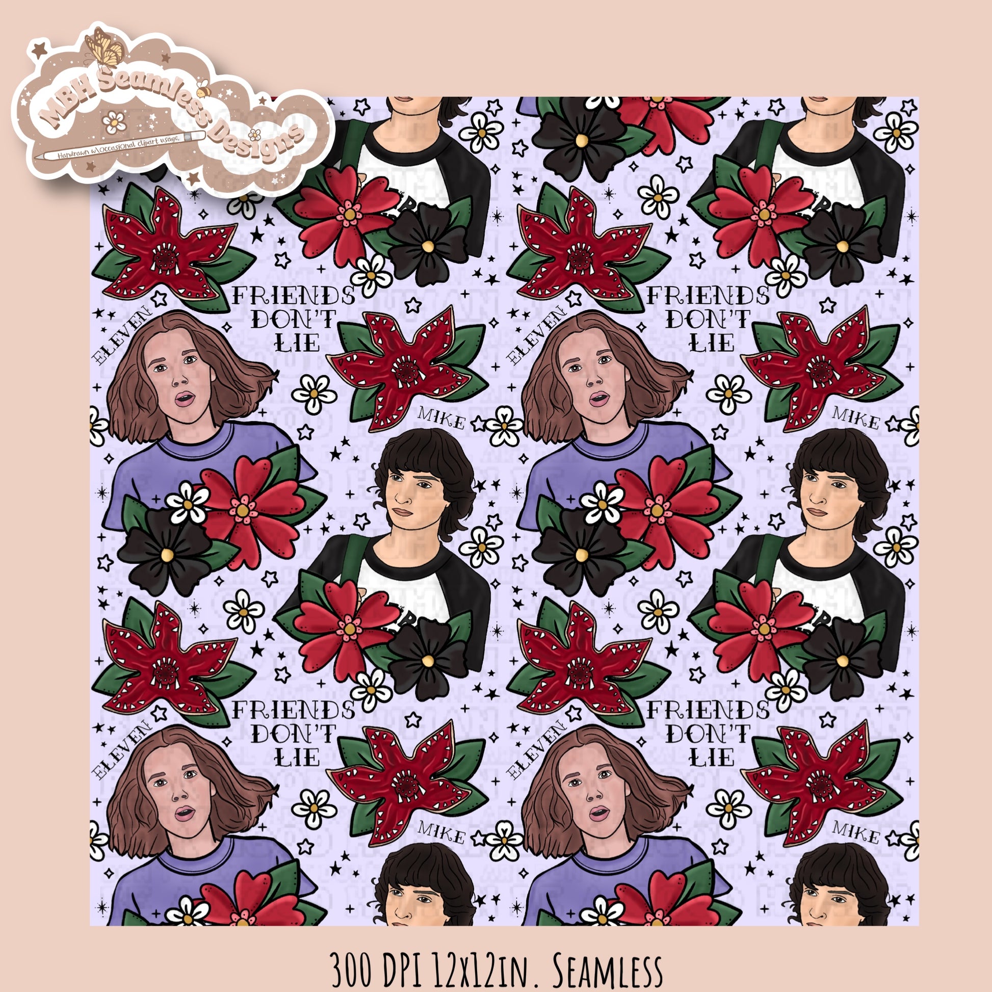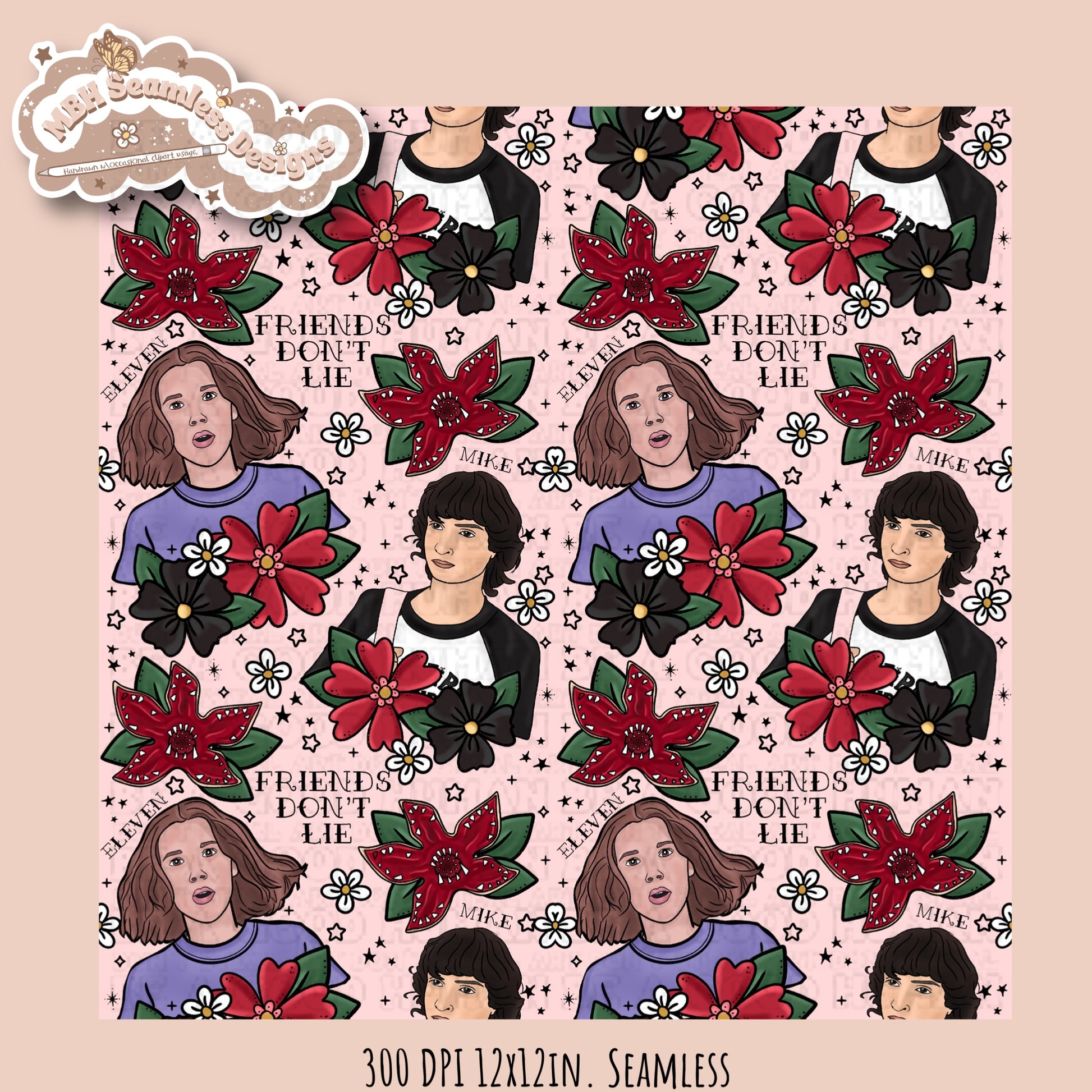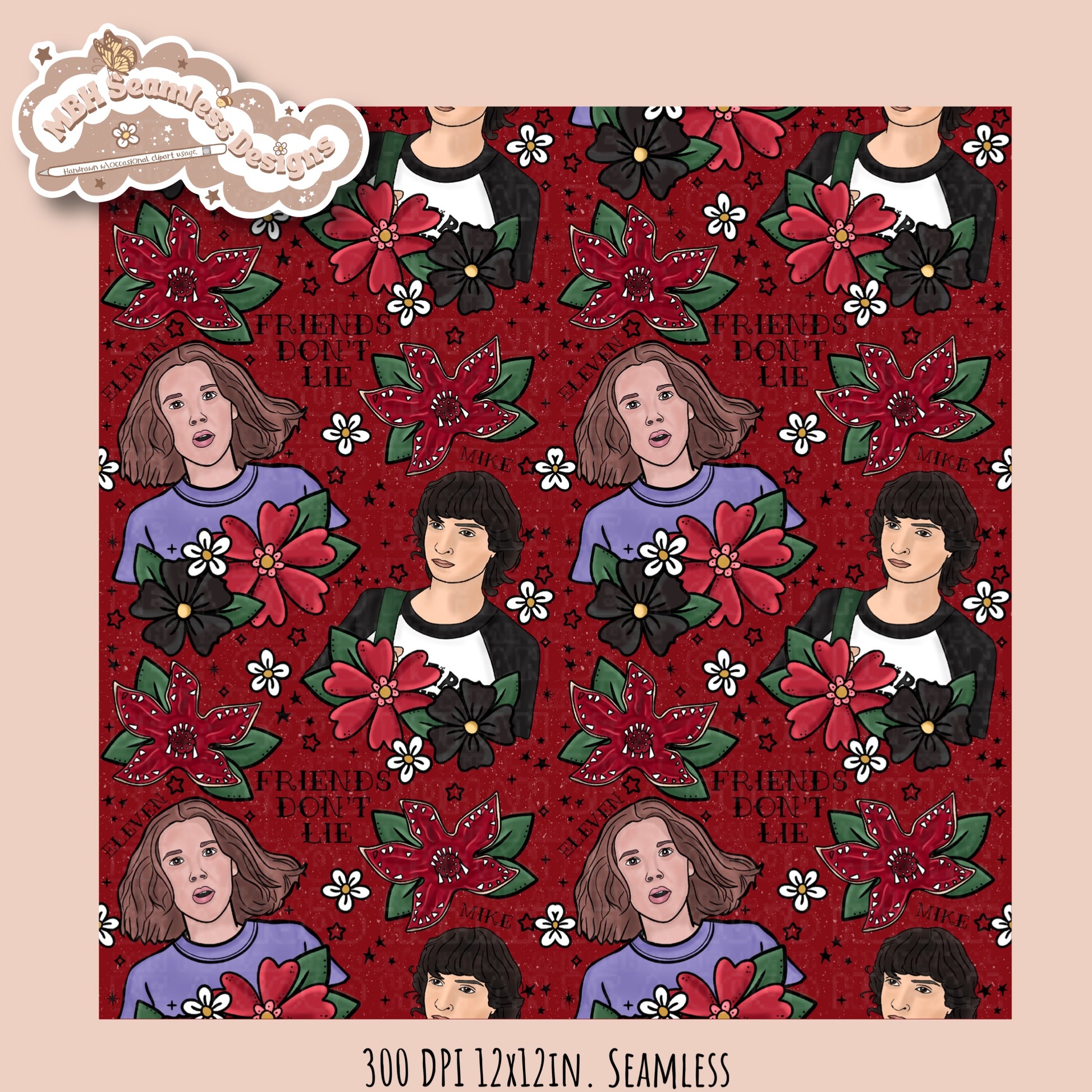 Stranger Things x Tattoo Floral Seamless Pattern // PNG //Multiple Colorways