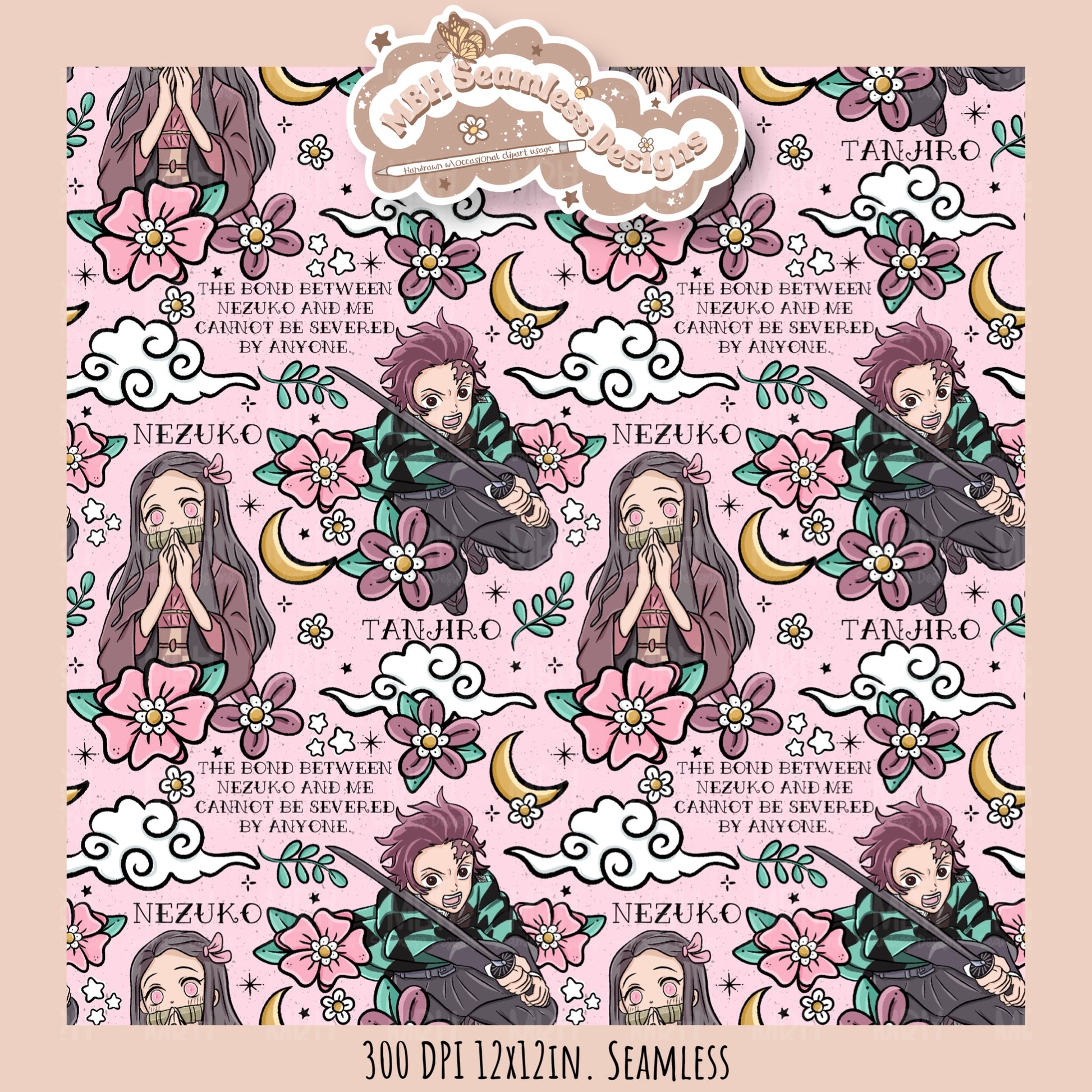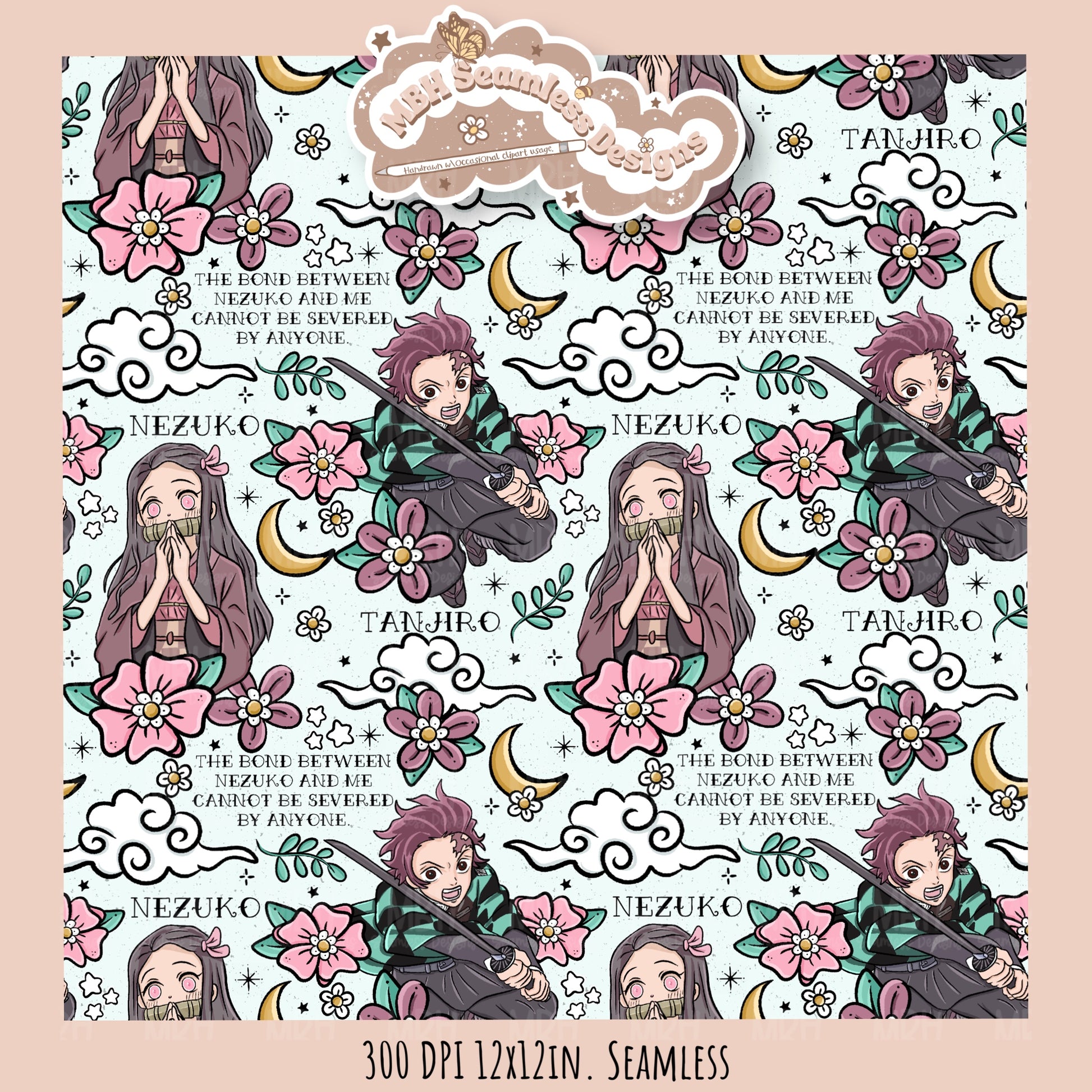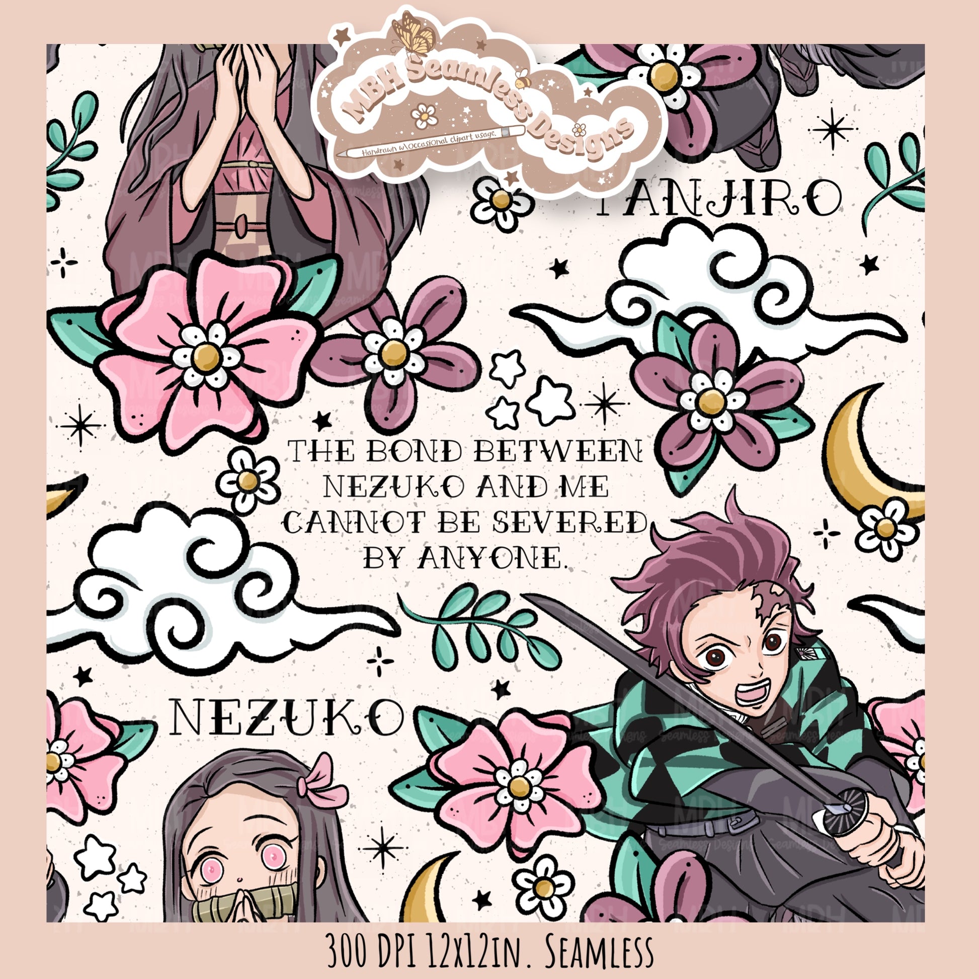Tanjiro Nezuko Quote Floral Seamless Pattern // PNG // MULTIPLE COLORWAY OPTIONS