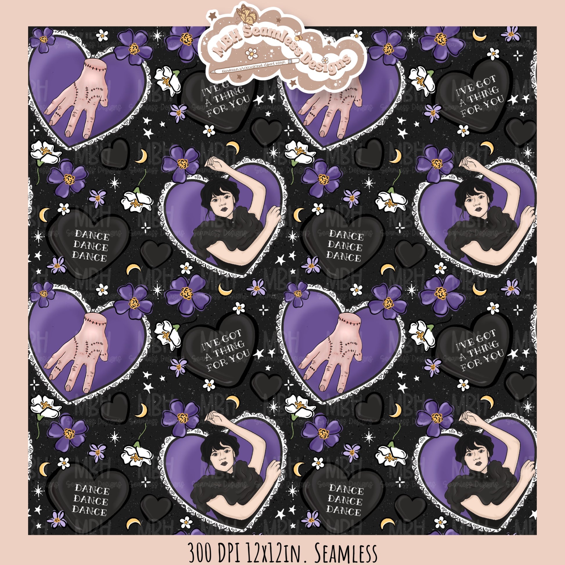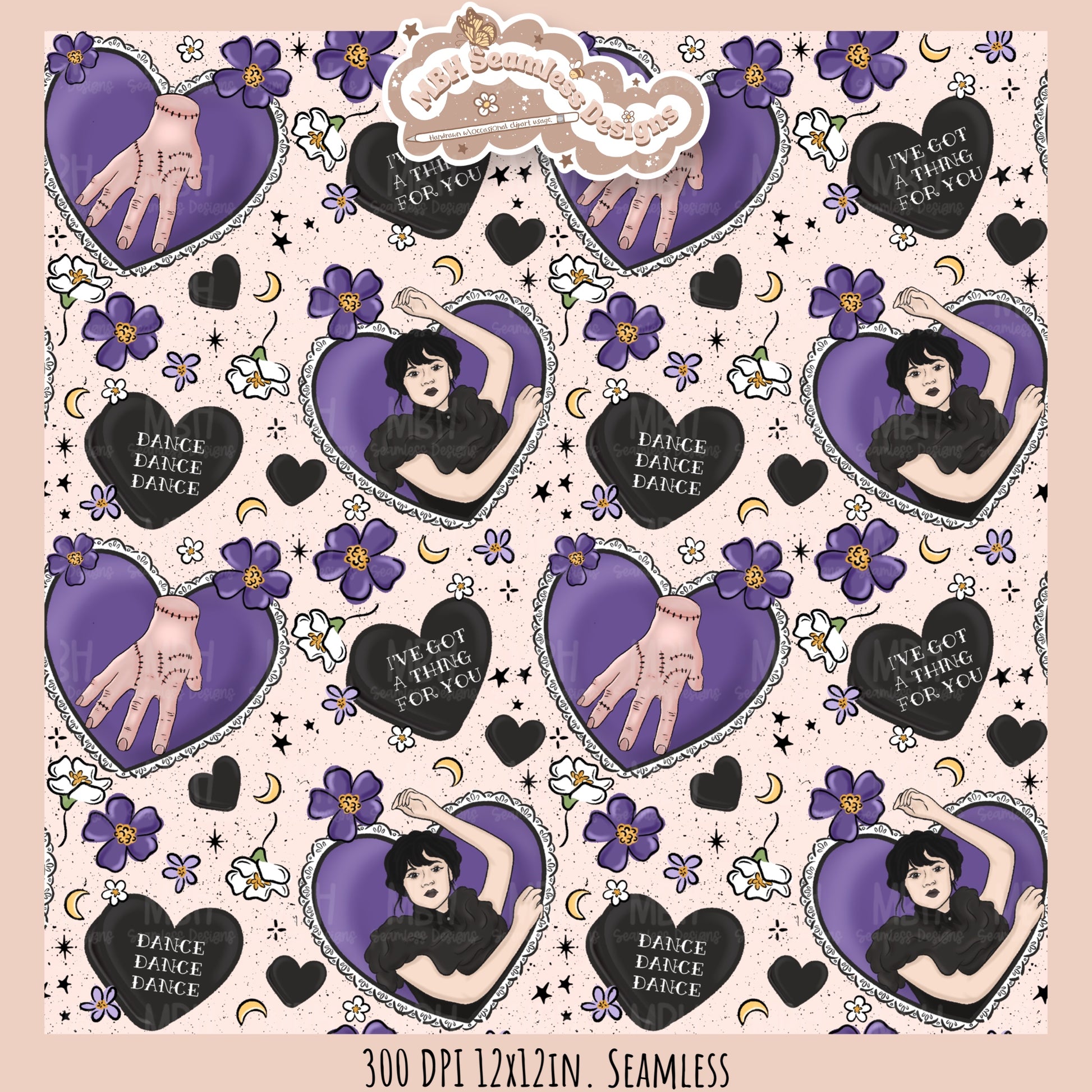 Wednesday Purple Tattoo Hearts Seamless Pattern // PNG // Assorted Colorways